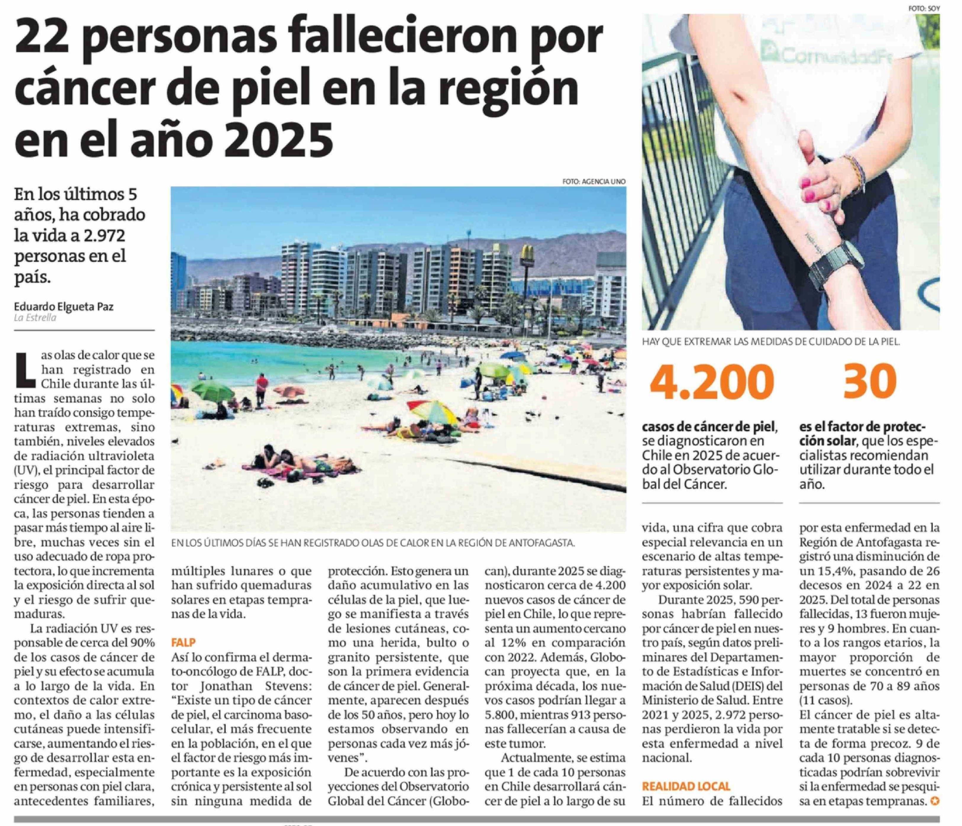 Título: 22 Personas fallecieron por cáncer de piel en la región en el año 2025