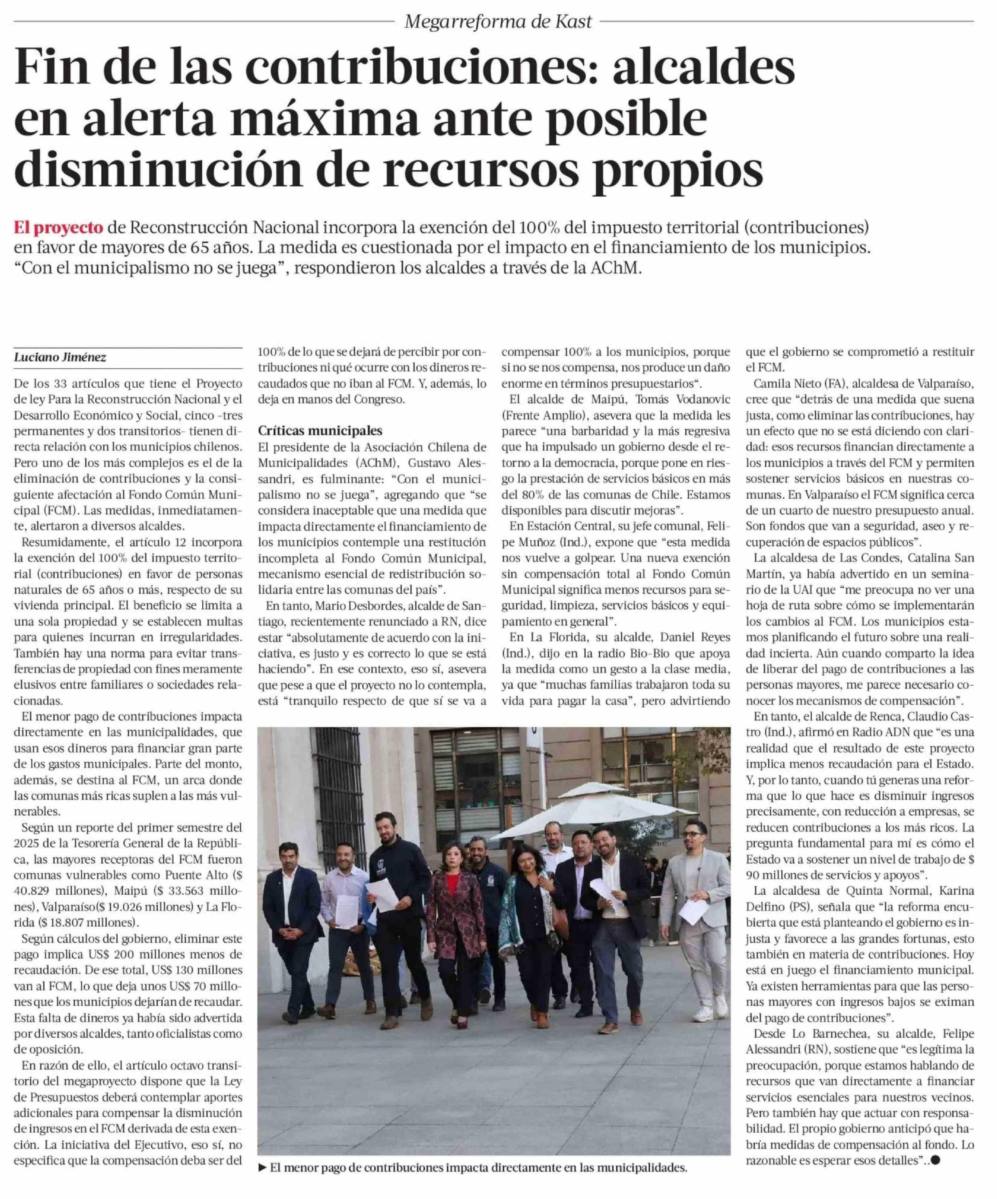 Título: Fin de las contribuciones: alcaldes en alerta máxima ante posible disminución de recursos propios