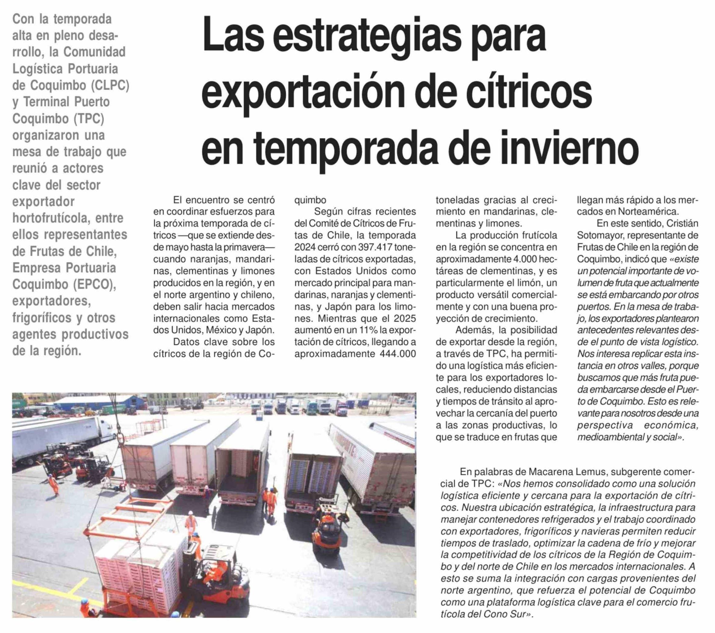 | Título: | Las estrategias para exportación de cítricos en temporada de invierno |
