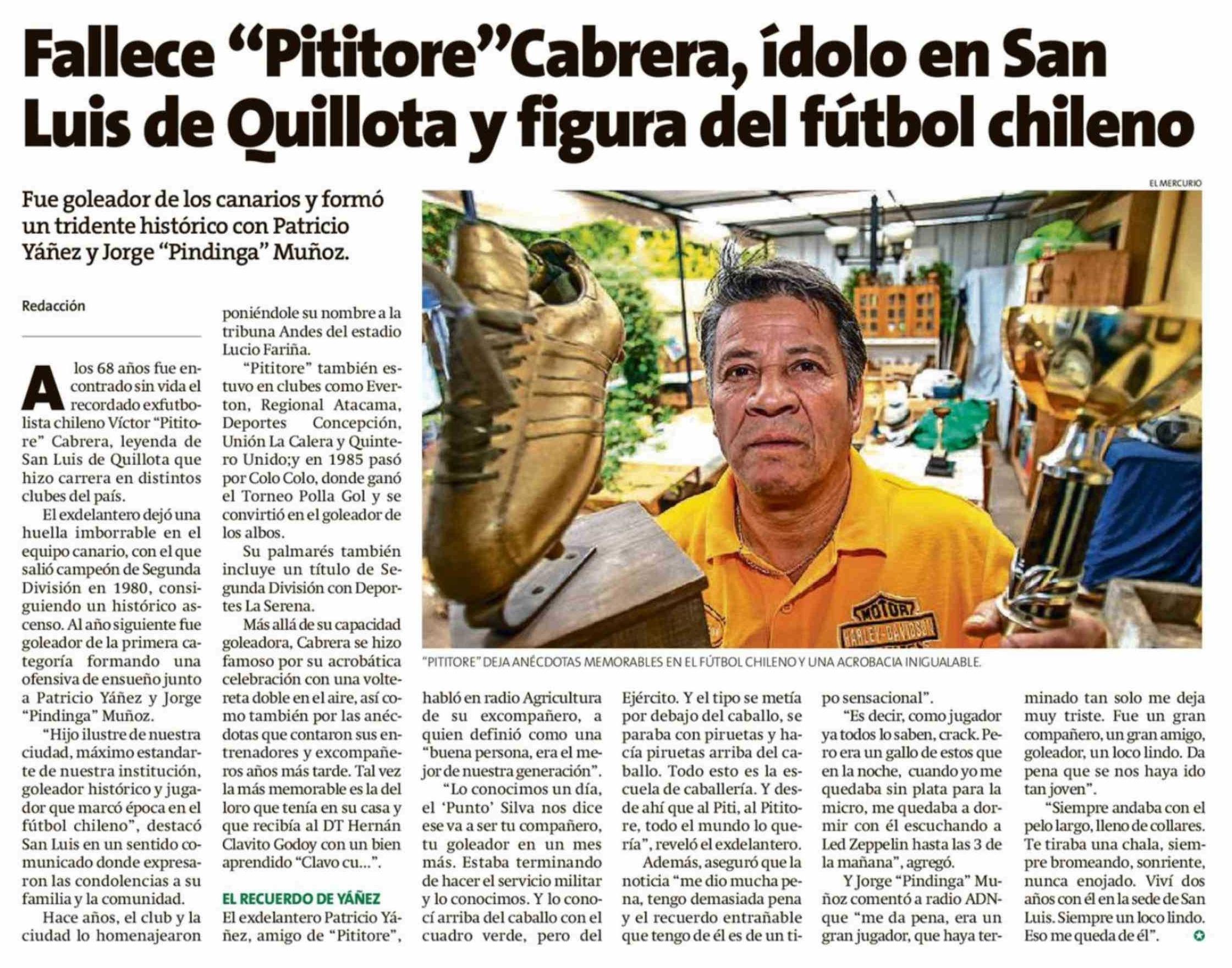 Título: Fallece "Pititore"Cabrera, ídolo en San Luis de Quillota y figura del fútbol chileno