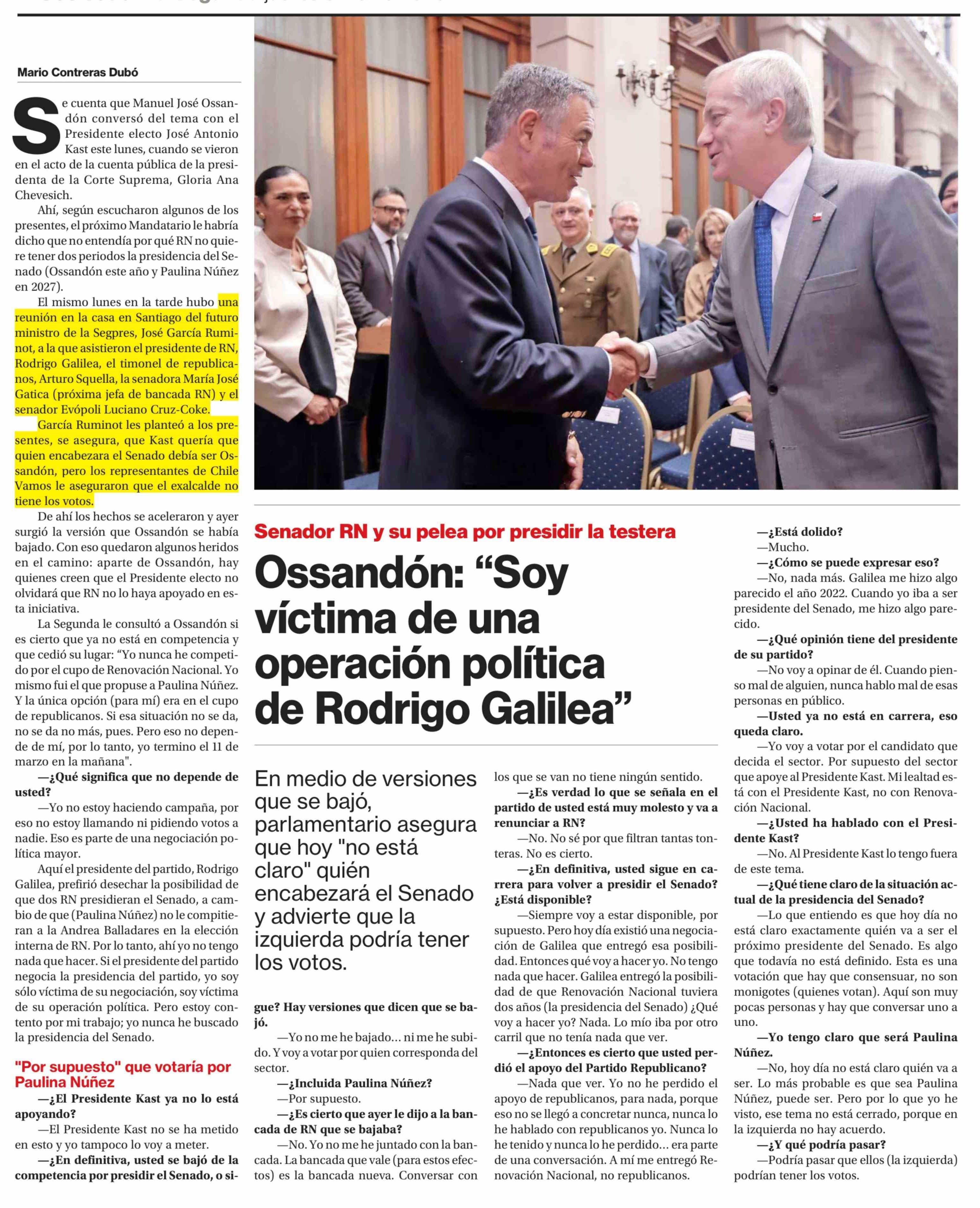 Título: Ossandón: "Soy víctima de una operación política de Rodrigo Galilea"