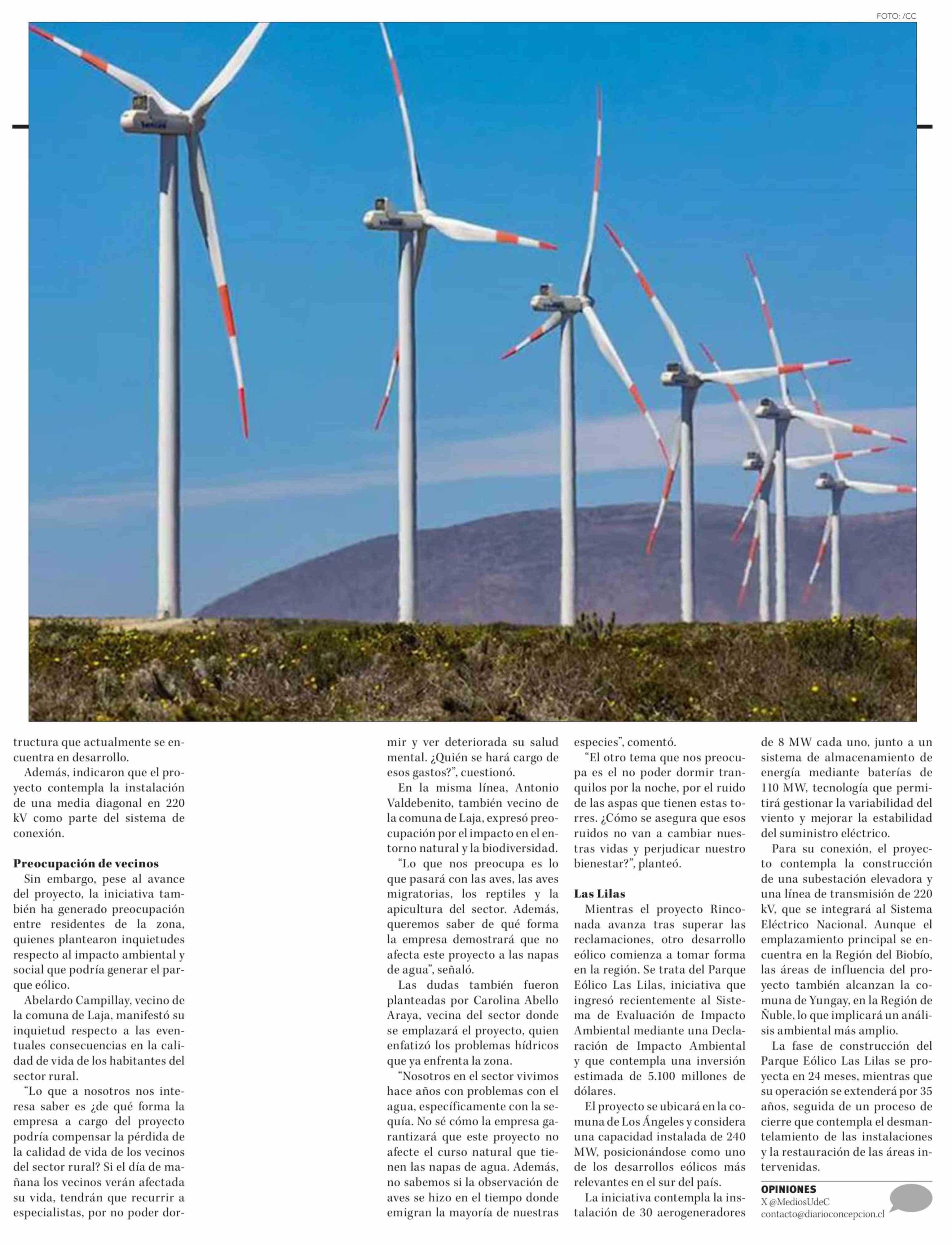 Título: Comité de Ministros desestima reclamaciones contra Parque Eólico en Los Angeles: US$365 millones