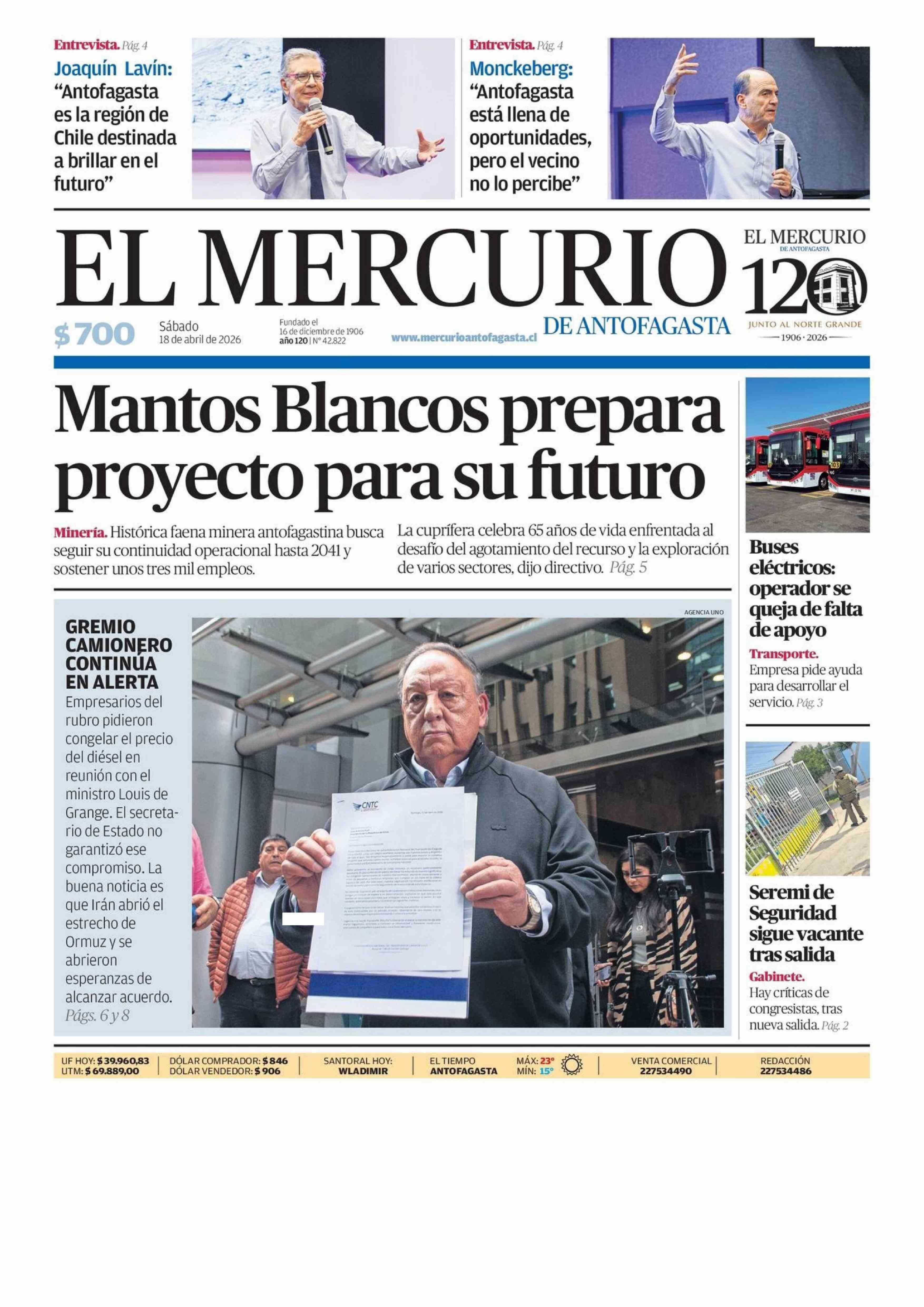 | Fecha: | 18-04-2026 | Sector: | Portada | Región: | Región de Antofagasta |