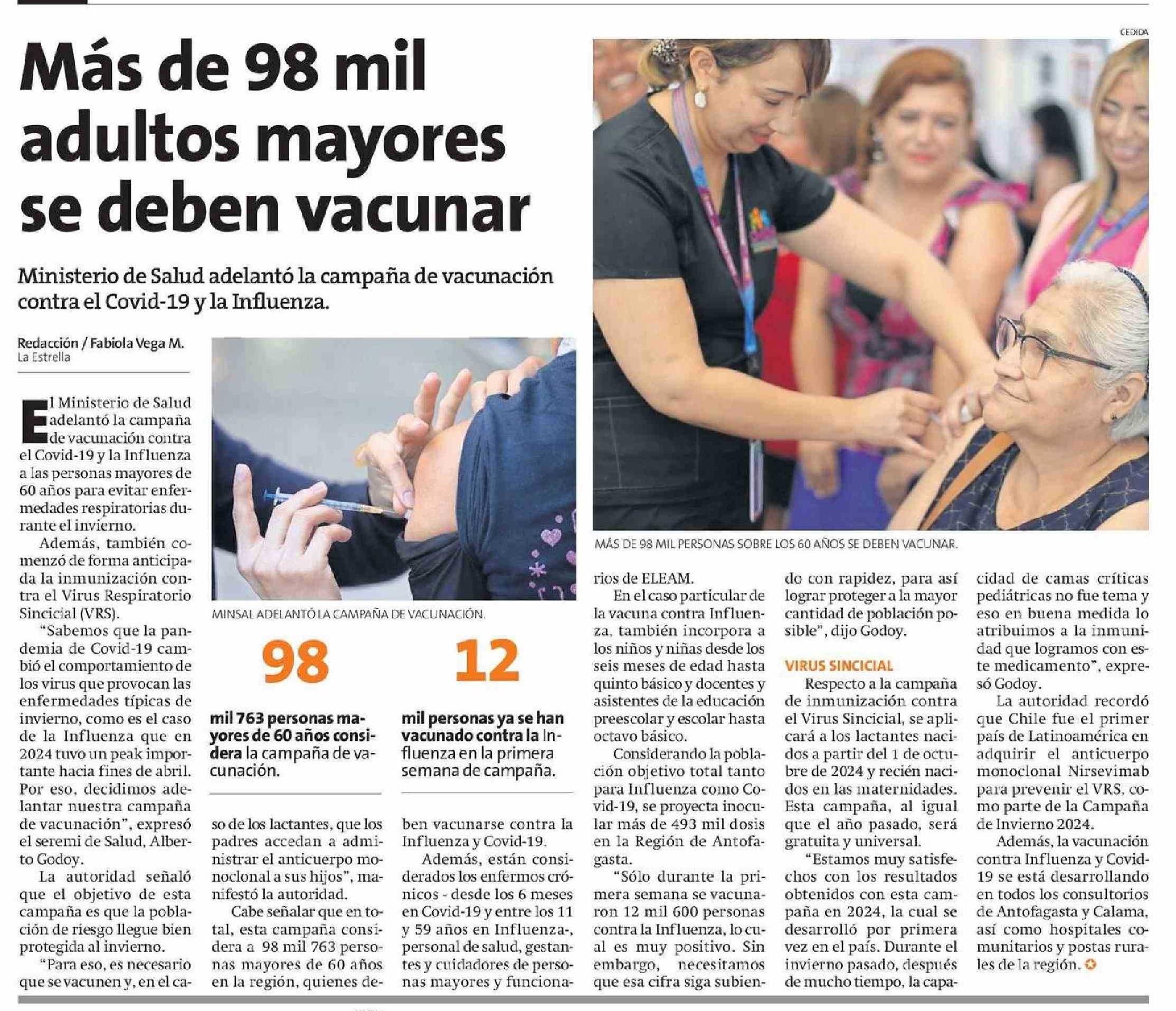 Más de 98 mil adultos mayores se deben vacunar 13-03-2025 La Estrella de Tocopilla |
