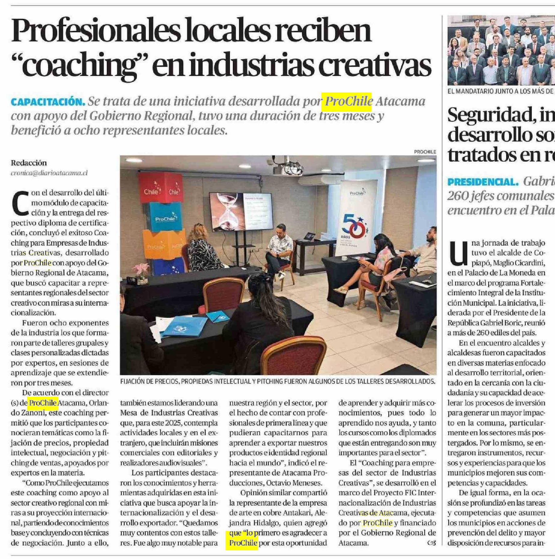 Profesionales locales reciben “coaching” en industrias creativas 11-01-2025 El Diario de Atacama |