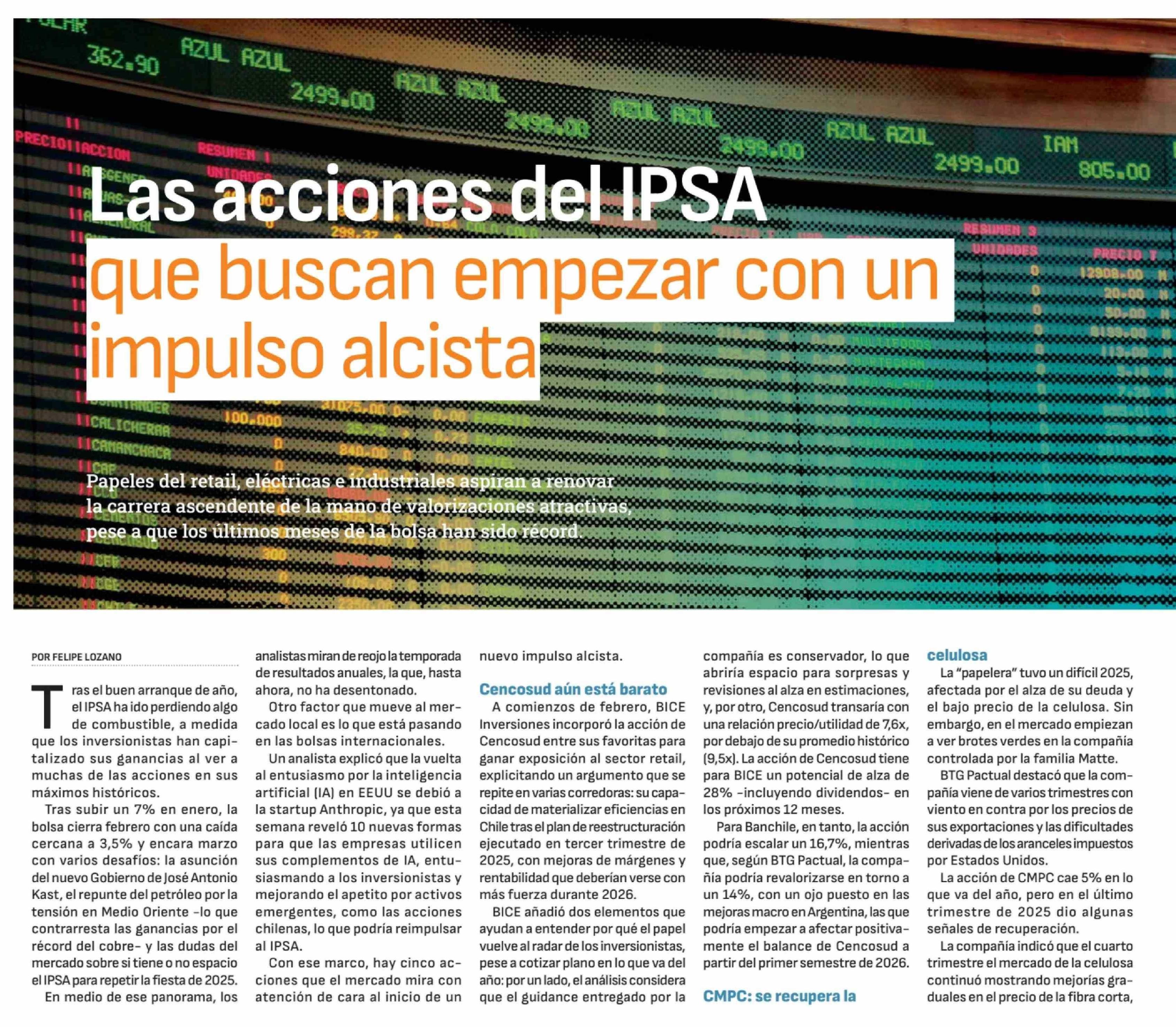 Las acciones del IPSA que buscan empezar con un impulso alcista 28-02-2026 Diario Financiero |