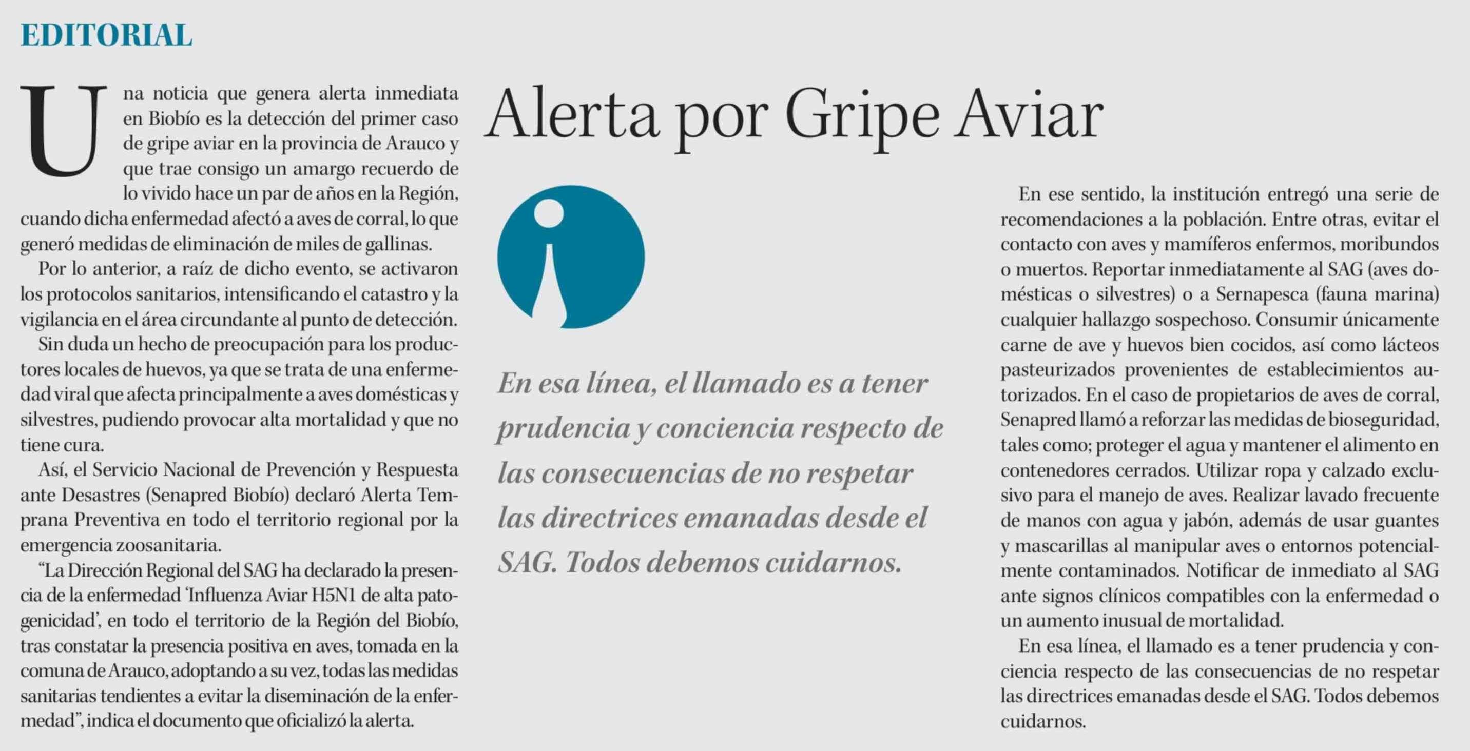 Editorial: Alerta por Gripe Aviar 15-04-2026 Diario Concepción |