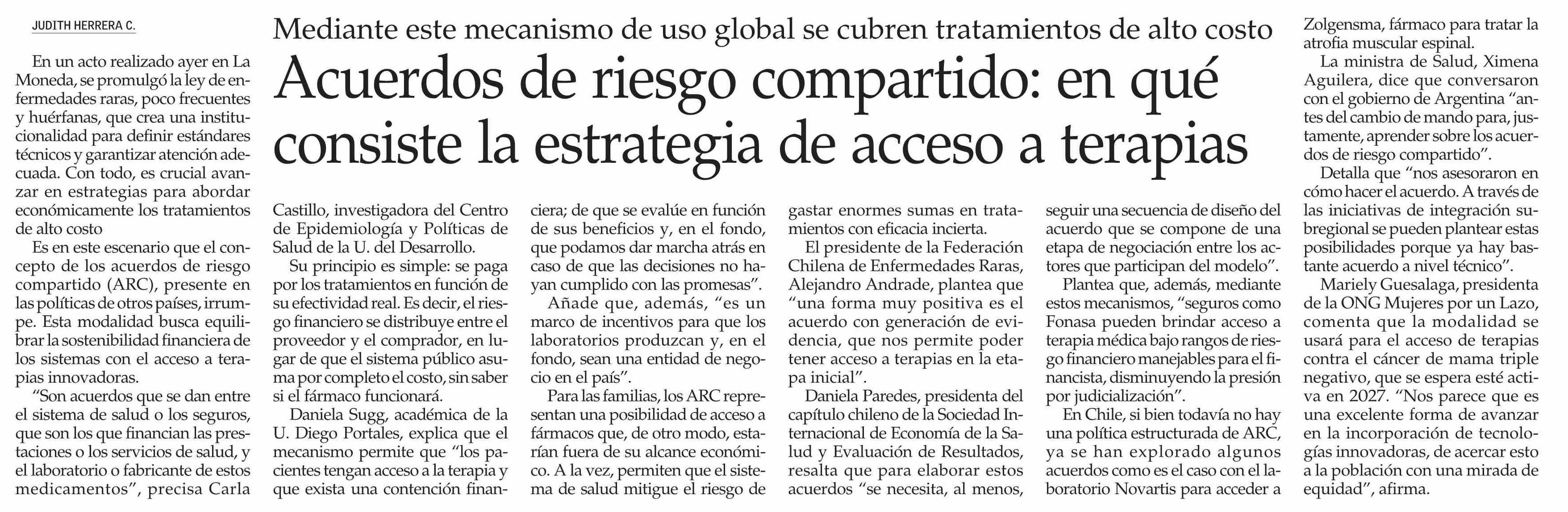 Acuerdos de riesgo compartido: en qué consiste la estrategia de acceso a terapias 26-04-2025 El Mercurio |