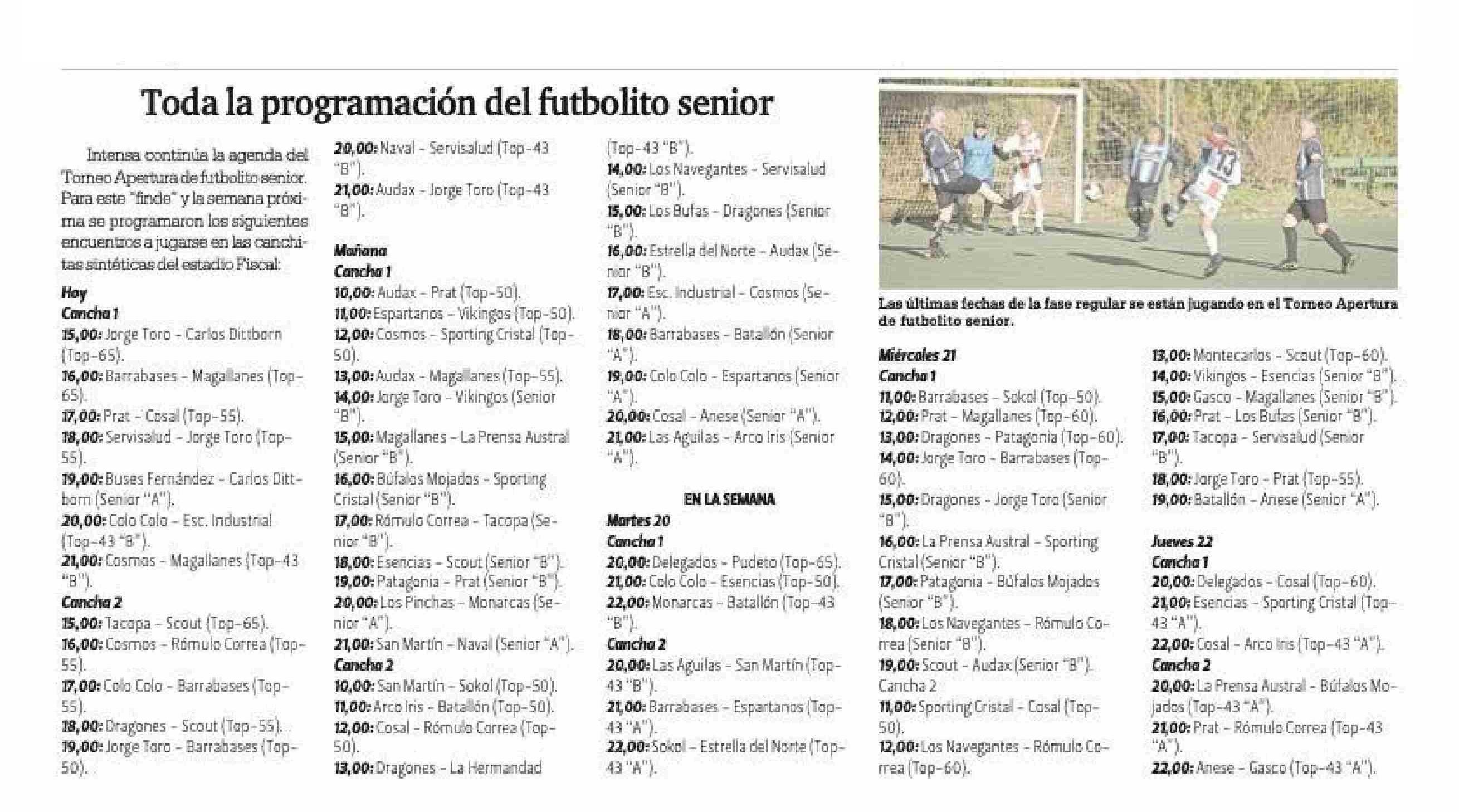 Toda la programación del futbolito senior 17-05-2025 La Prensa Austral |
