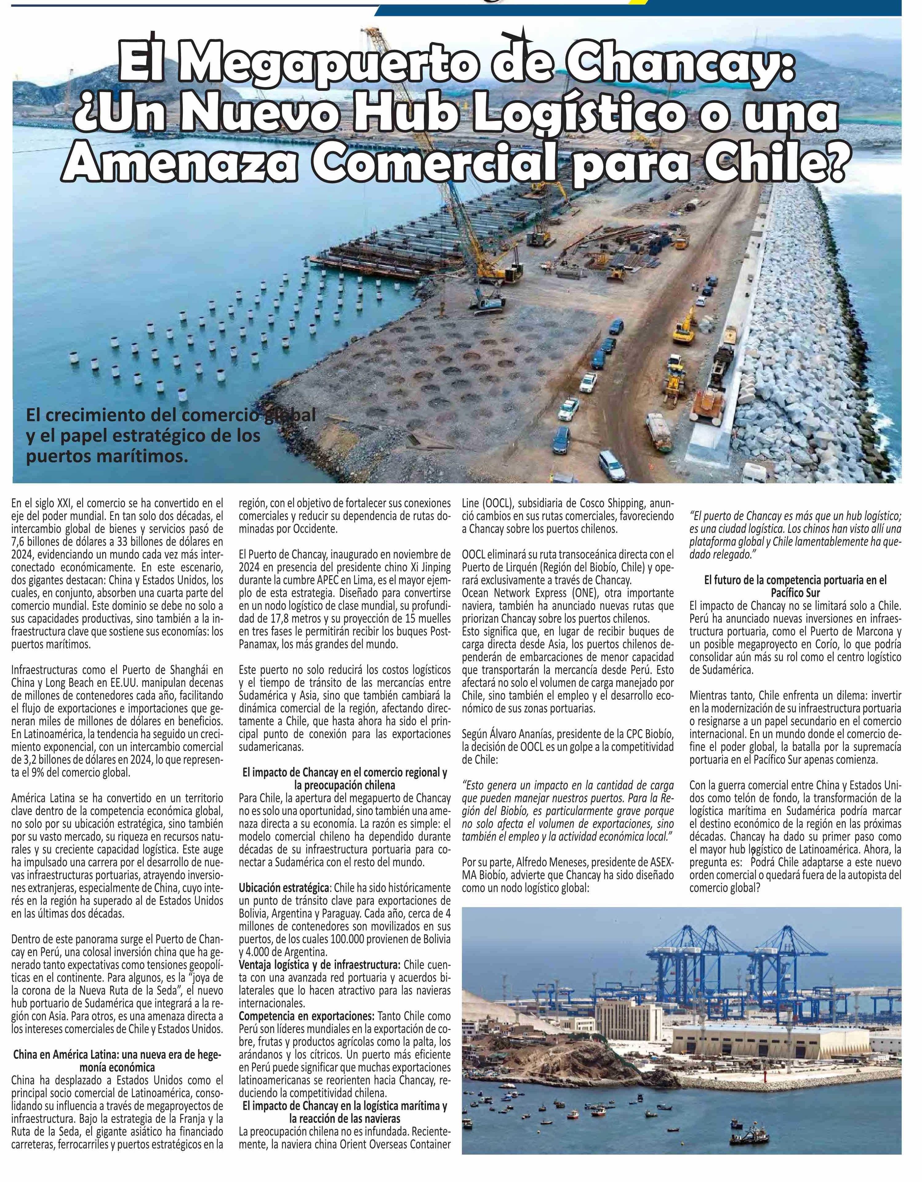 El Megapuerto de Chancay: El Megapuerto de Chancay: ¿Un Nuevo Hub Logístico o una ¿Un Nuevo Hub Logístico o una Amenaza Comercial para Chile? Amenaza Comercial para Chile? 23-02-2025 El Longino |