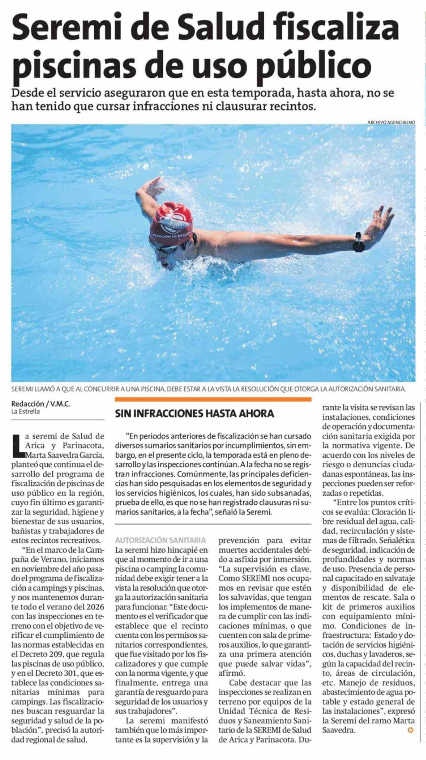 Título: Seremi de Salud fiscaliza piscinas de uso público