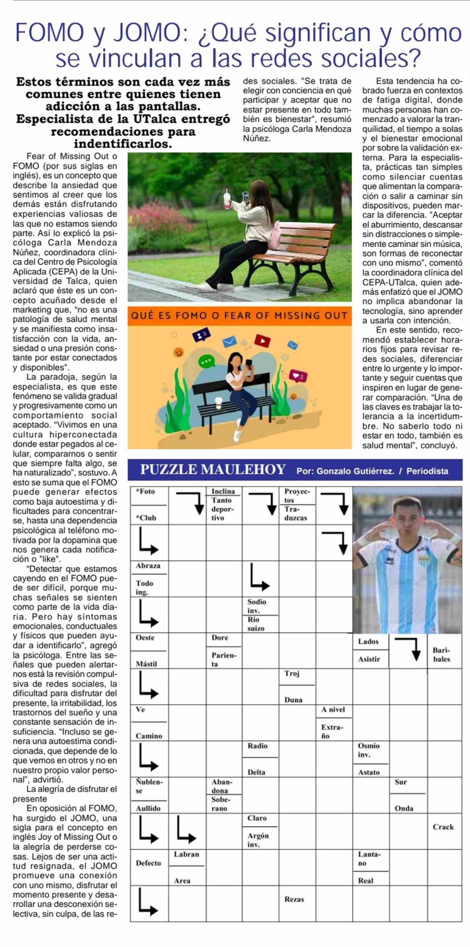 FOMO y JOMO: ¿Qué significan y cómo se vinculan a las redes sociales? 12-06-2025 Maule Hoy |