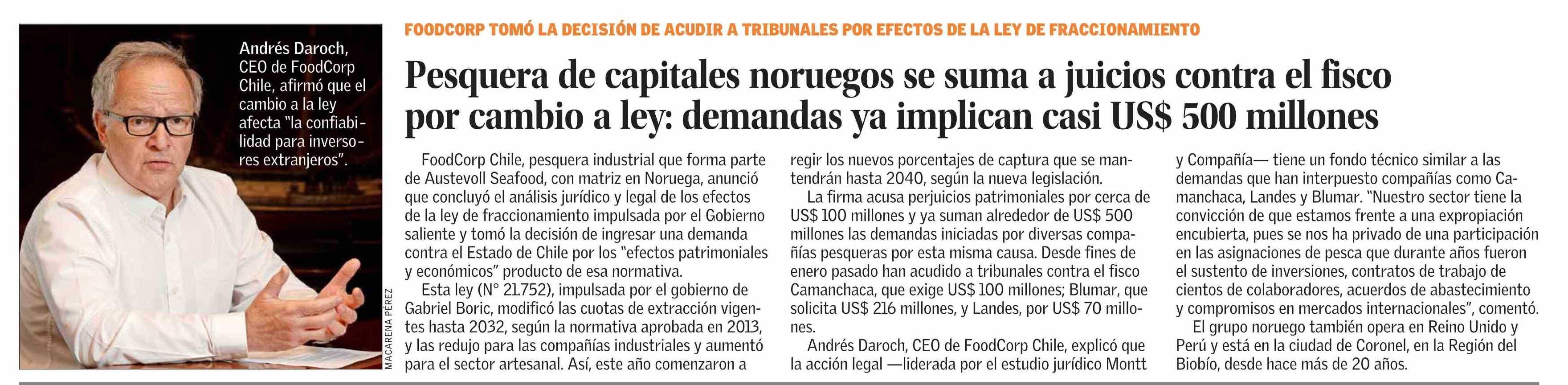 | Título: | Pesquera de capitales noruegos se suma a juicios contra el fisco por cambio a ley: demandas ya implican casi US$ 500 millones |