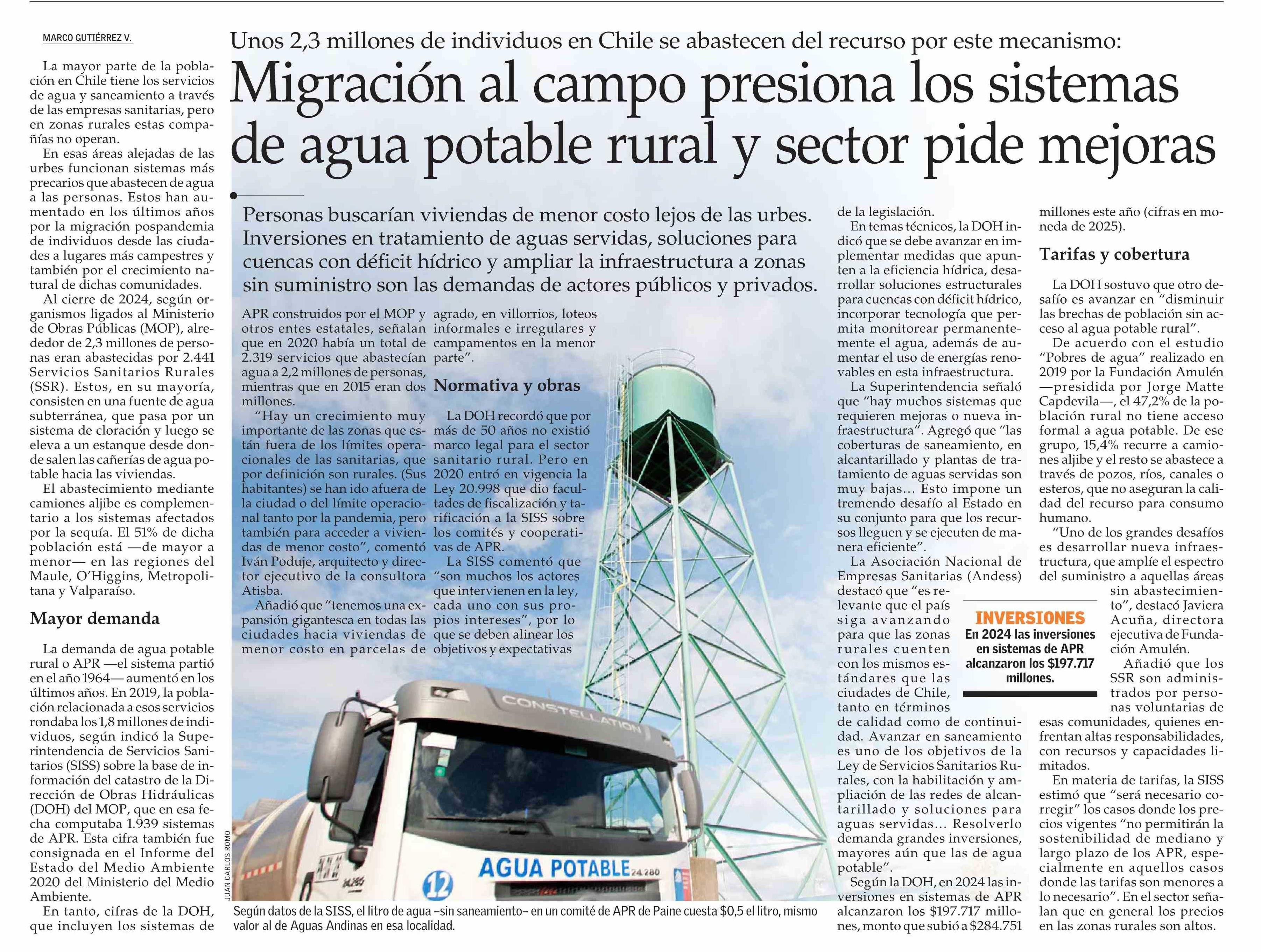 Migración al campo presiona los sistemas de agua potable rural y sector pide mejoras 16-06-2025 El Mercurio |