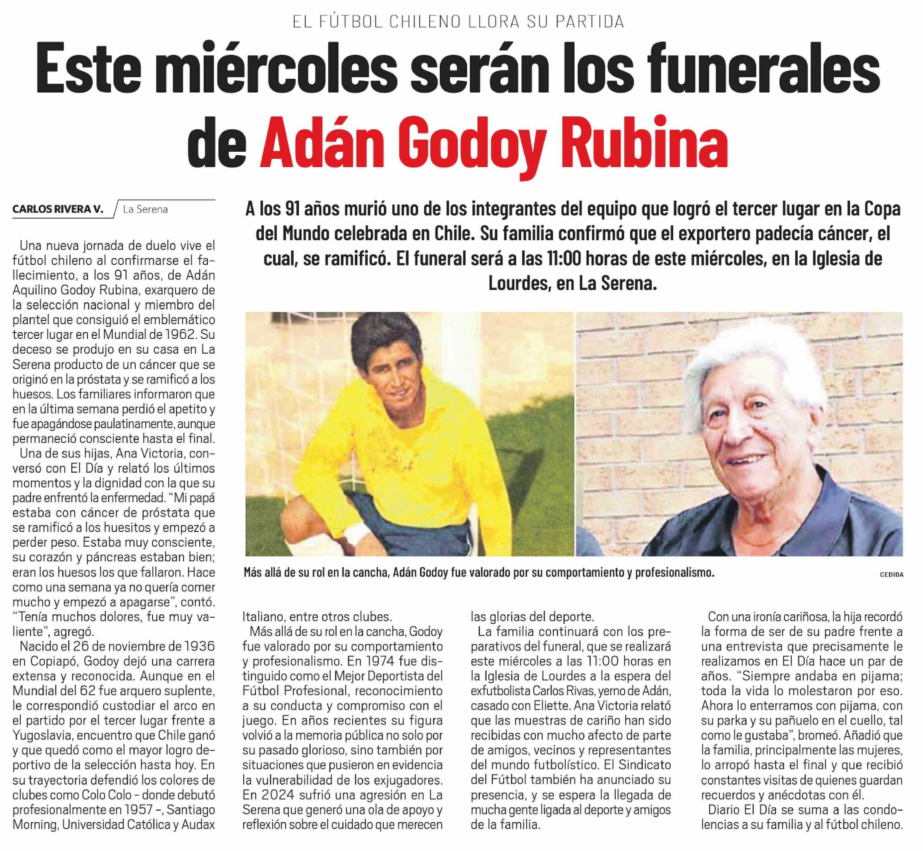 Título: Este miércoles serán los funerales de Adán Godoy Rubina