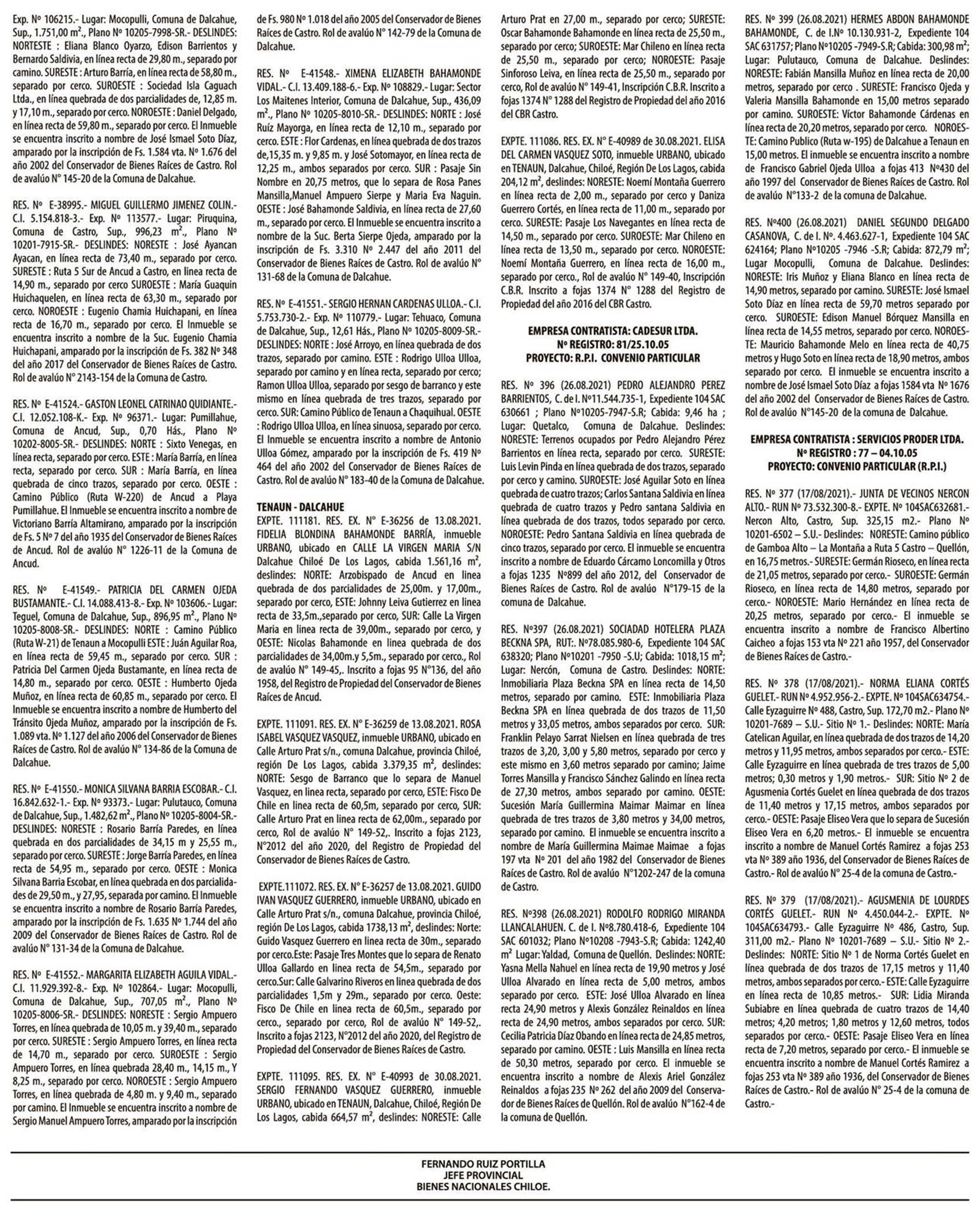 Extractos REGULARIZACION DE POSESION DE LA PEQUEÑA PROPIEDAD RAÍZ Y CONSTITUCION DEL DOMINIO SOBRE ELLA OFICINA PROVINCIAL DE BIENES NACIONALES DE CHILOE. 01-09-2021 La Estrella de Chiloé |