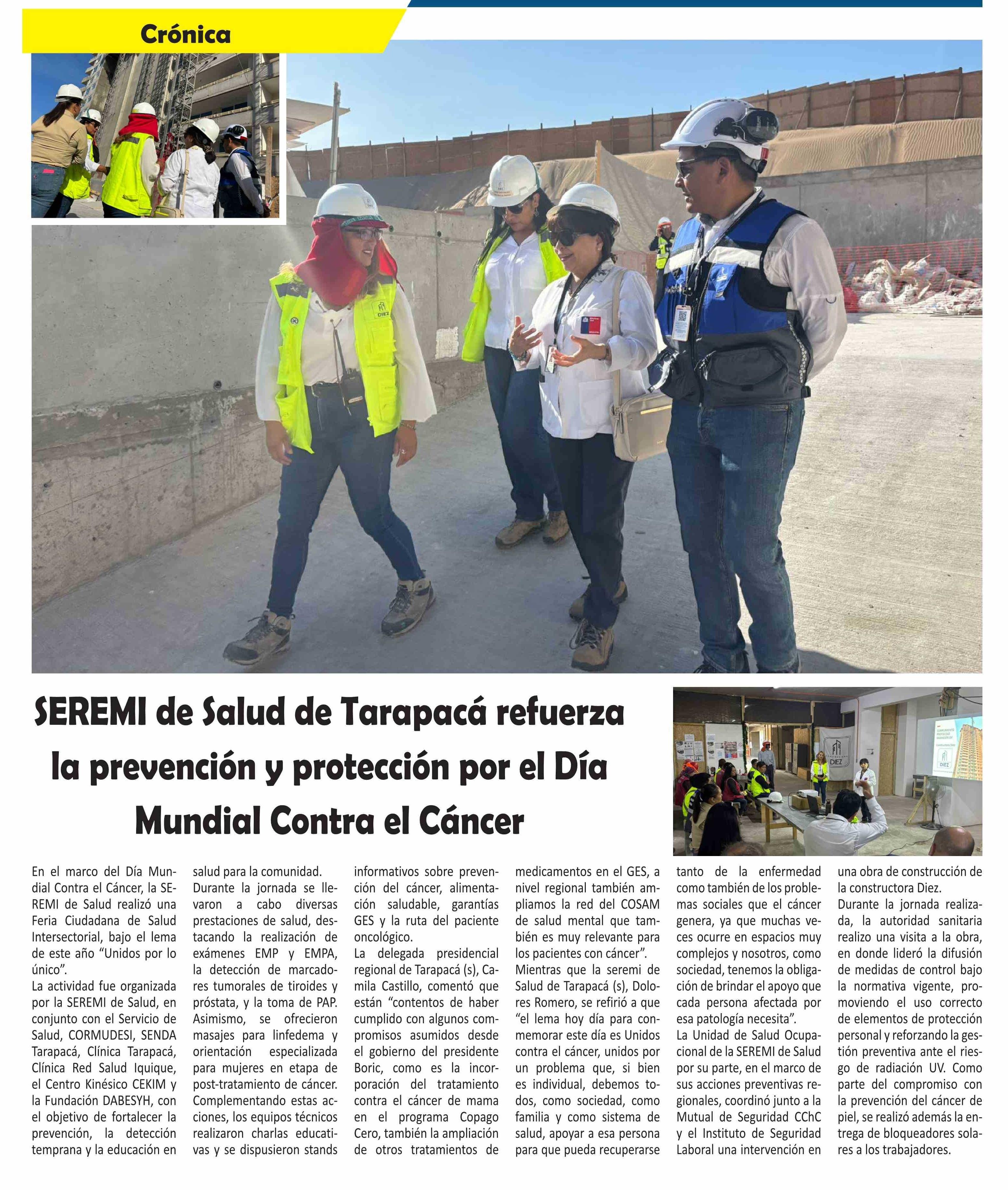 | Título: | SEREMI de 5alud de Tarapacá refuerza la prevención y protección por el Día Mundial Contra el Cáncer |