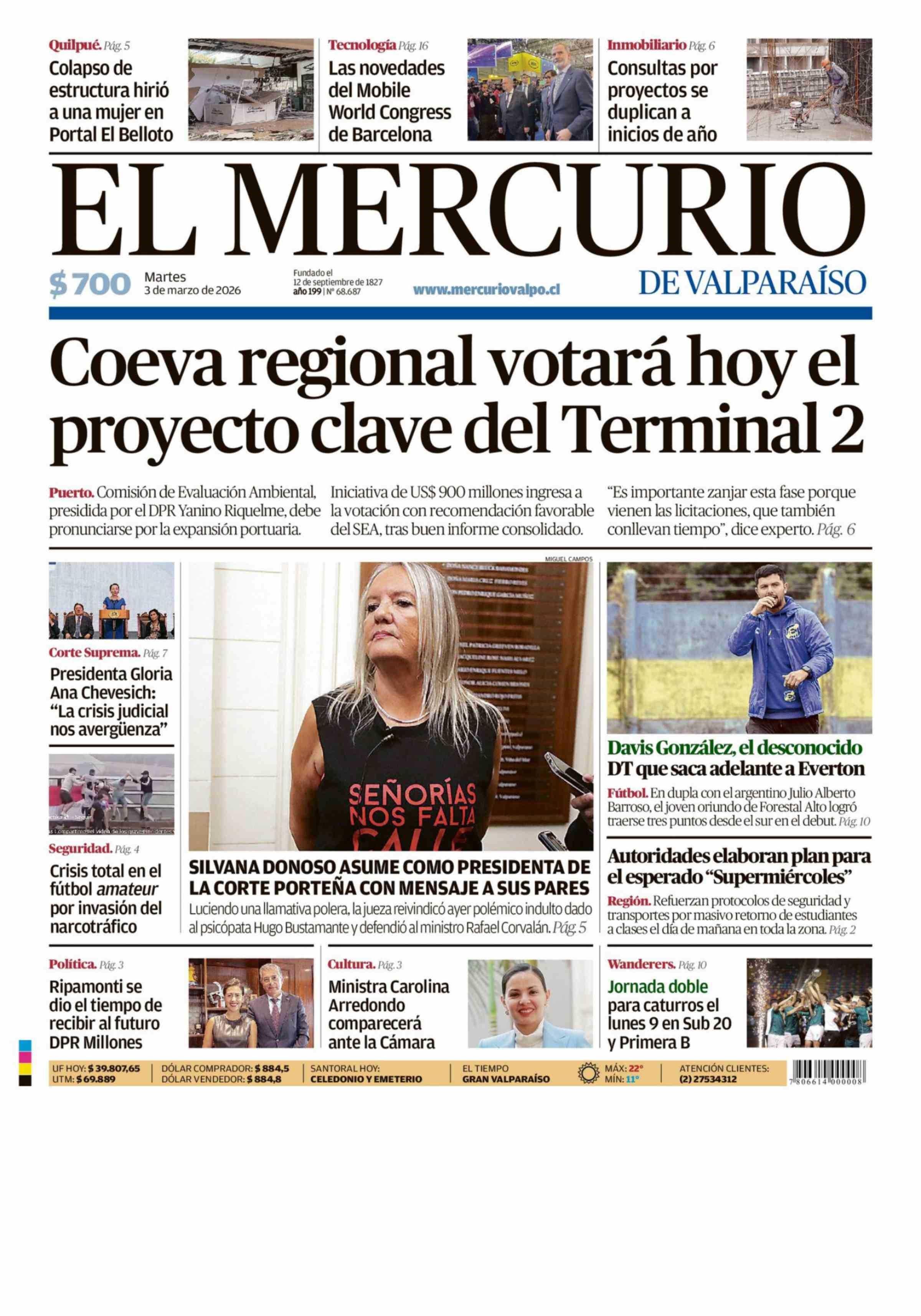 PORTADA EL MERCURIO DE VALPARAÍSO CHILE 03-03-2026 El Mercurio de Valparaíso |