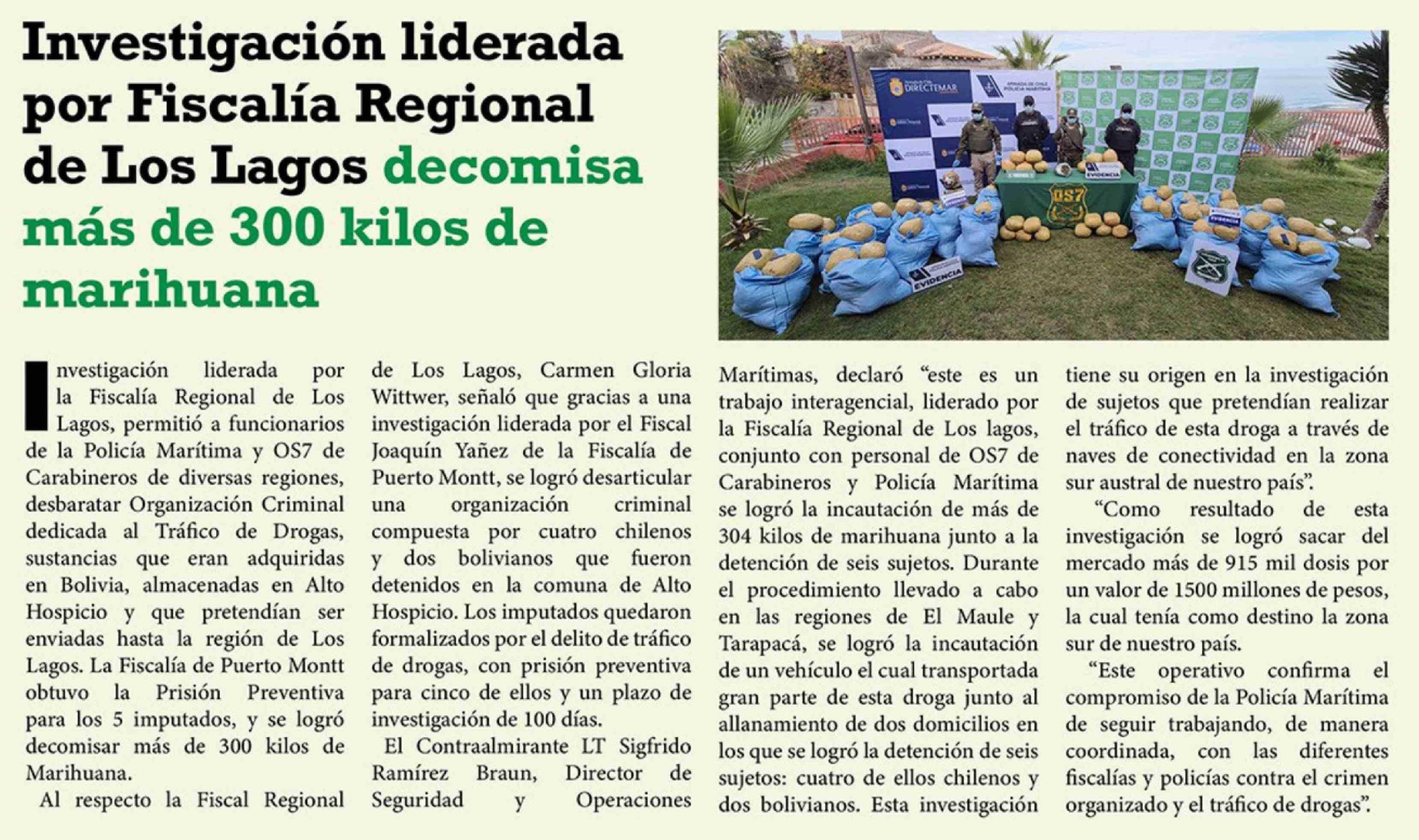 Título: Investigación liderada por Fiscalía Regional de Los Lagos decomisa más de 300 kilos de marihuana