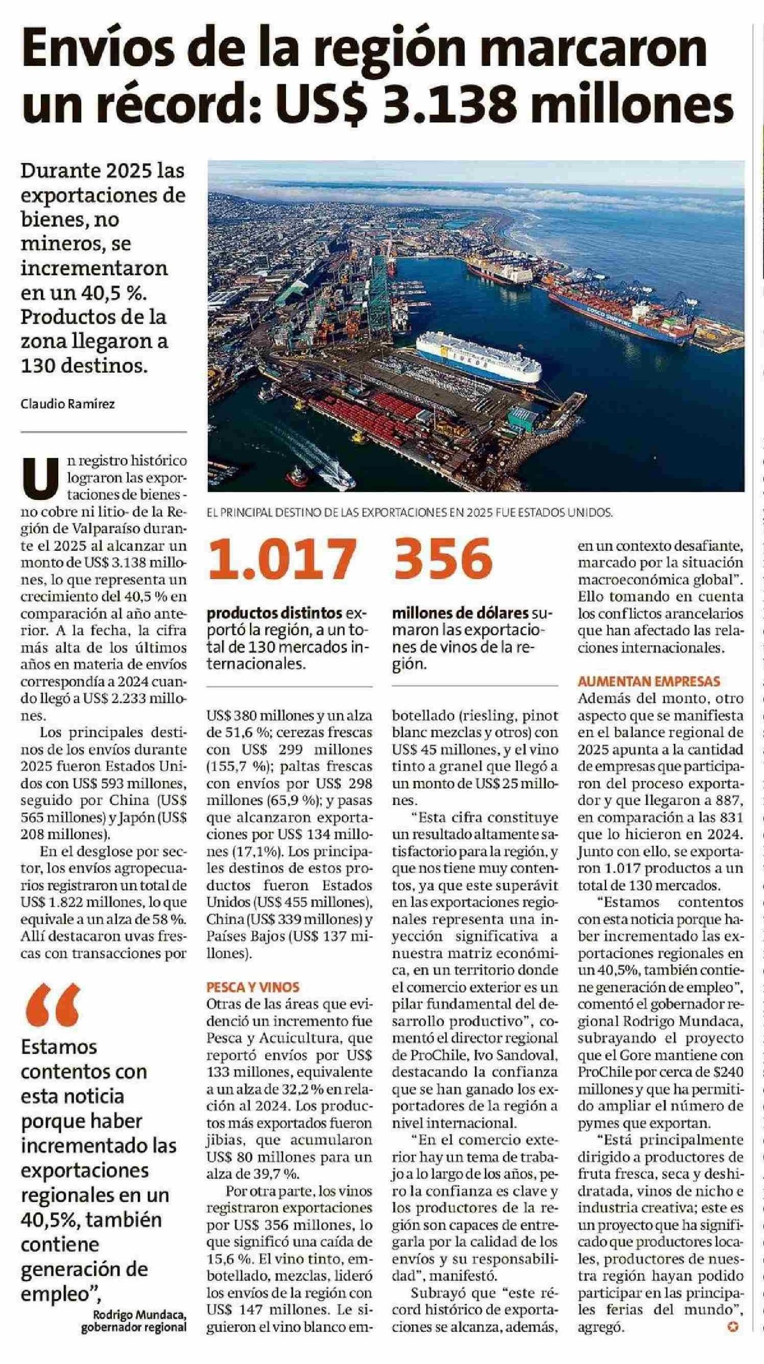 Envíos de la región marcaron un récord: US$ 3.138 millones 24-01-2026 El Líder |