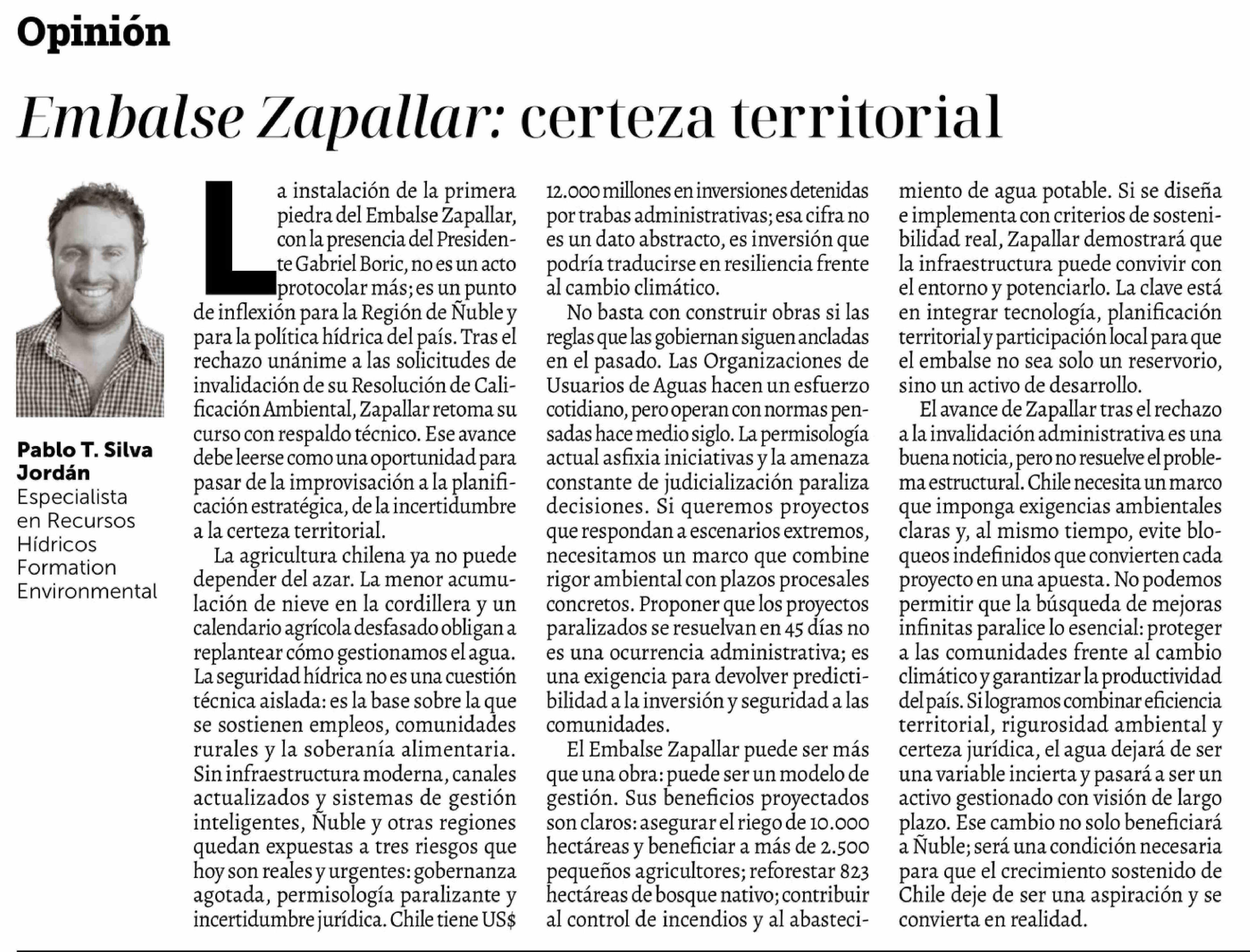 Título: Columnas de Opinión: Embalse Zapallar: certeza territorial