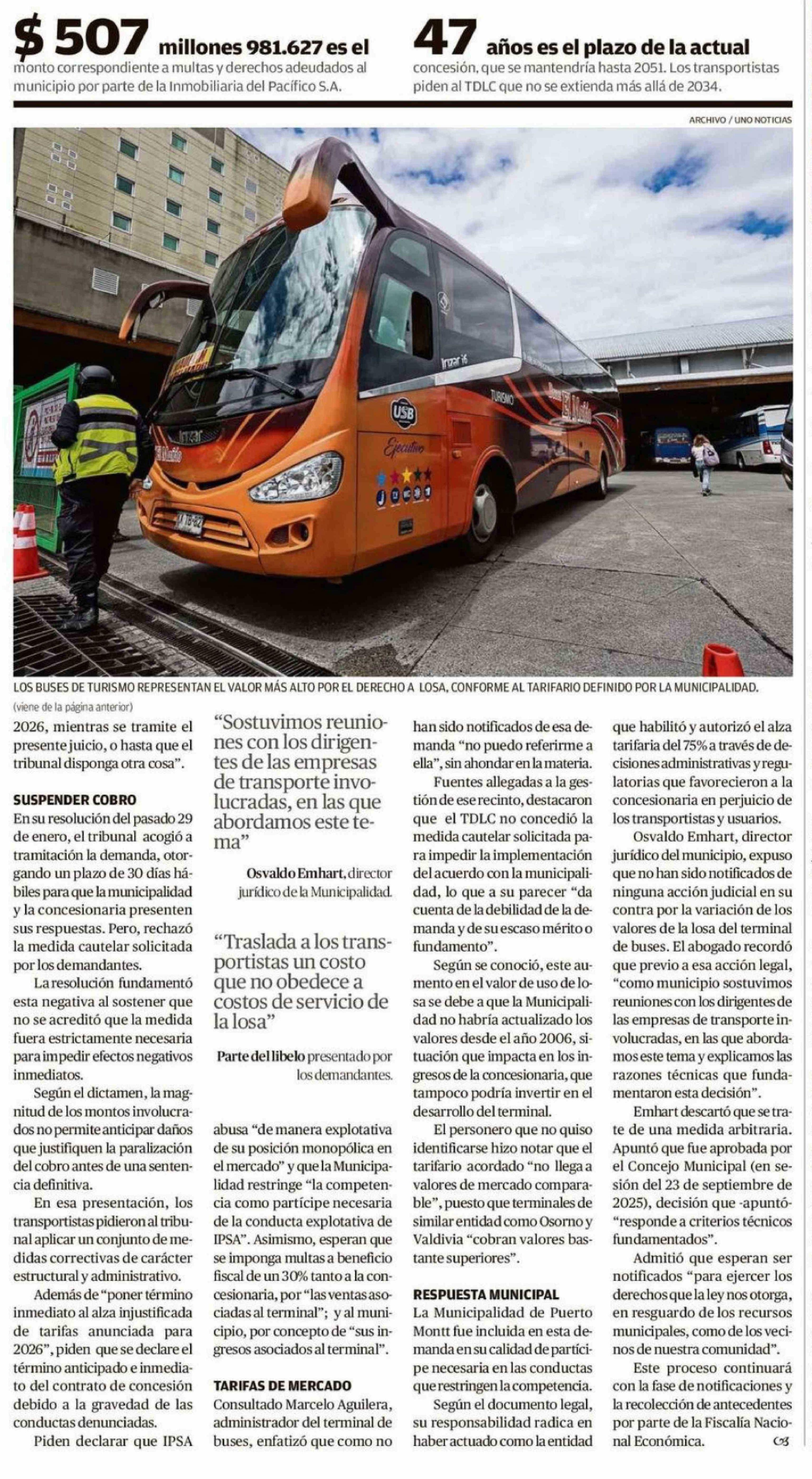 Tribunal de Libre Competencia acoge demanda por tarifas de uso de losa en terminal de buses 03-02-2026 El Llanquihue |