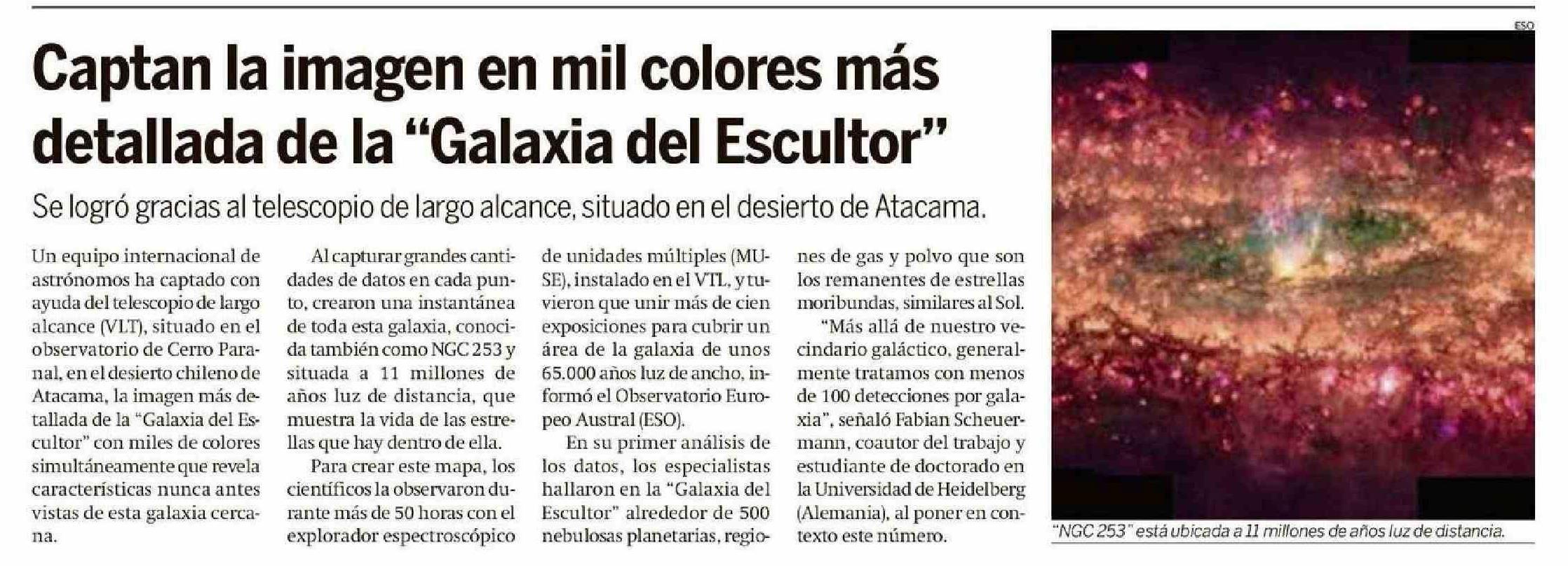 Captan la imagen en mil colores más detallada de la "Galaxia del Escultor" 19-06-2025 Hoy x Hoy Antofagasta |