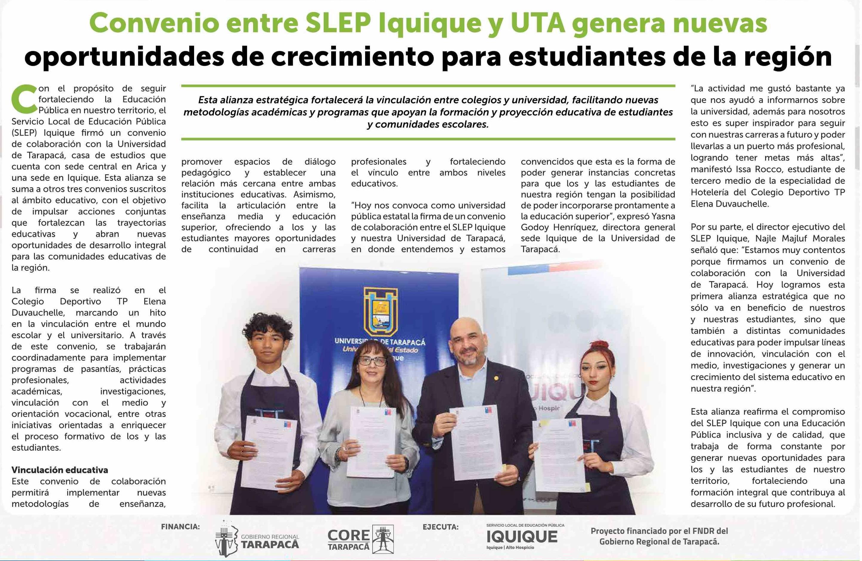 | Título: | Convenio entre SLEP Iquique y UTA genera nuevas oportunidades de crecimiento para estudiantes de la región |