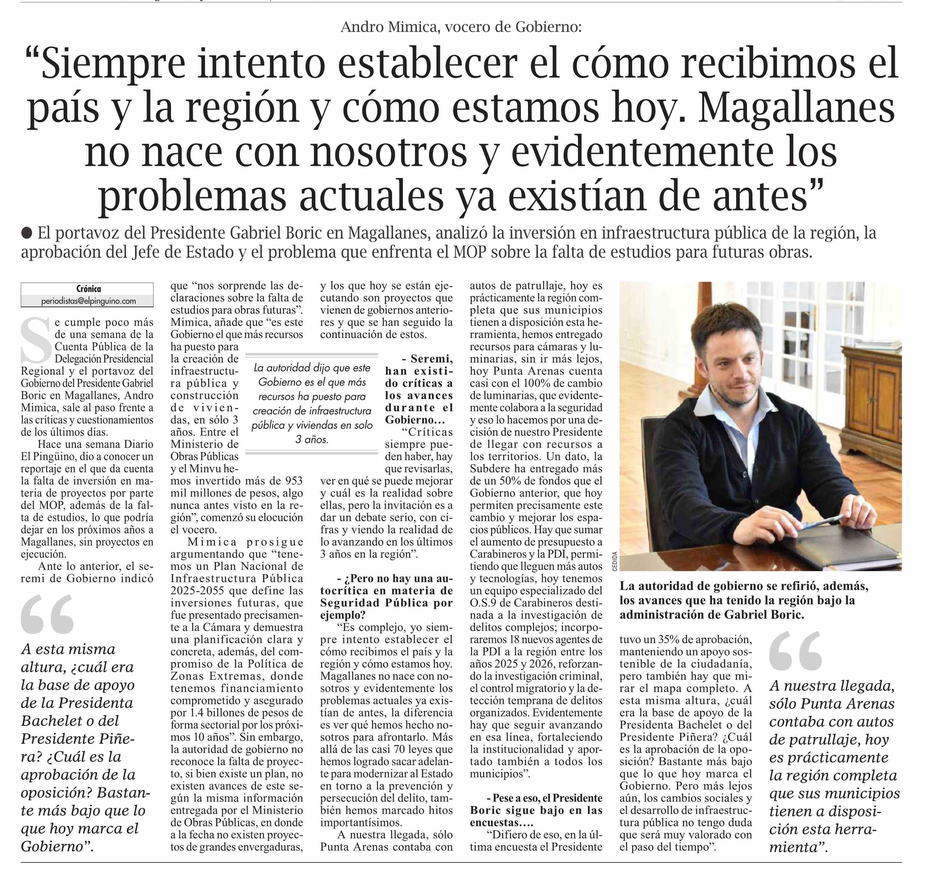 | Título: | “Siempre intento establecer el cómo recibimos el pais y la región y cómo estamos hoy. Magallanes no nace con nosotros y evidentemente los problemas actuales va existian de antes” |