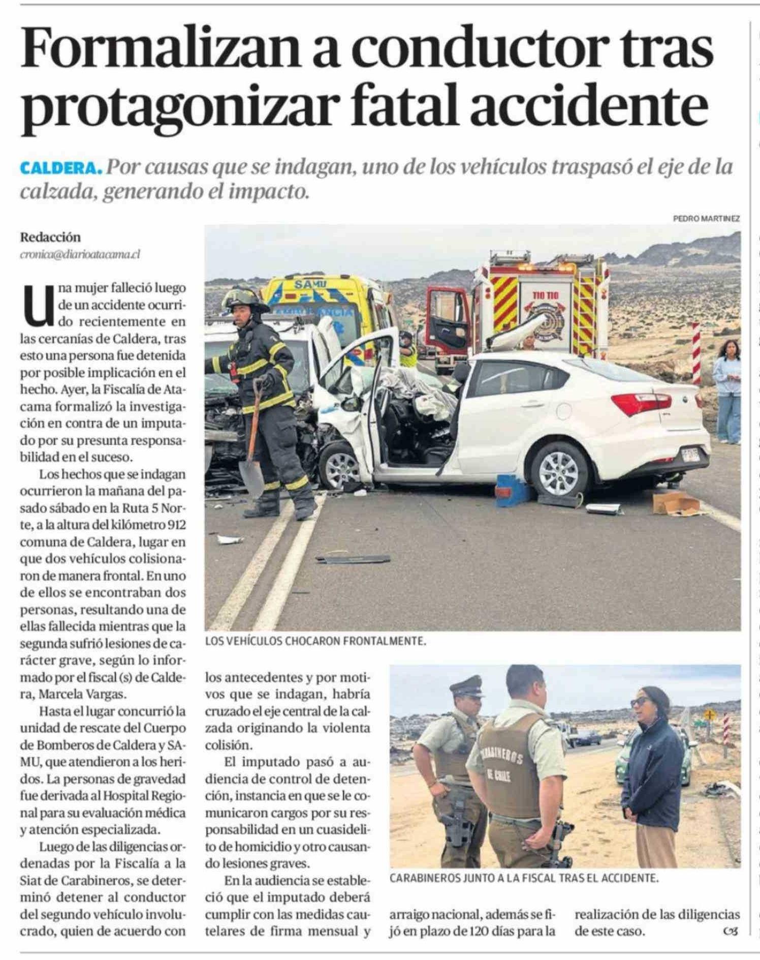 Formalizan a conductor tras protagonizar fatal accidente 03-03-2026 El Diario de Atacama |