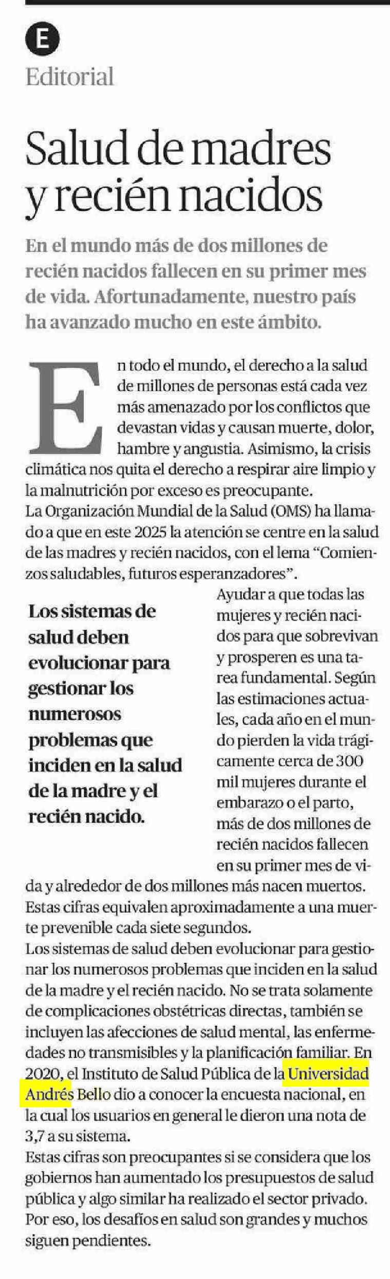 Salud de madres y recién nacidos 12-06-2025 El Mercurio de Antofagasta |