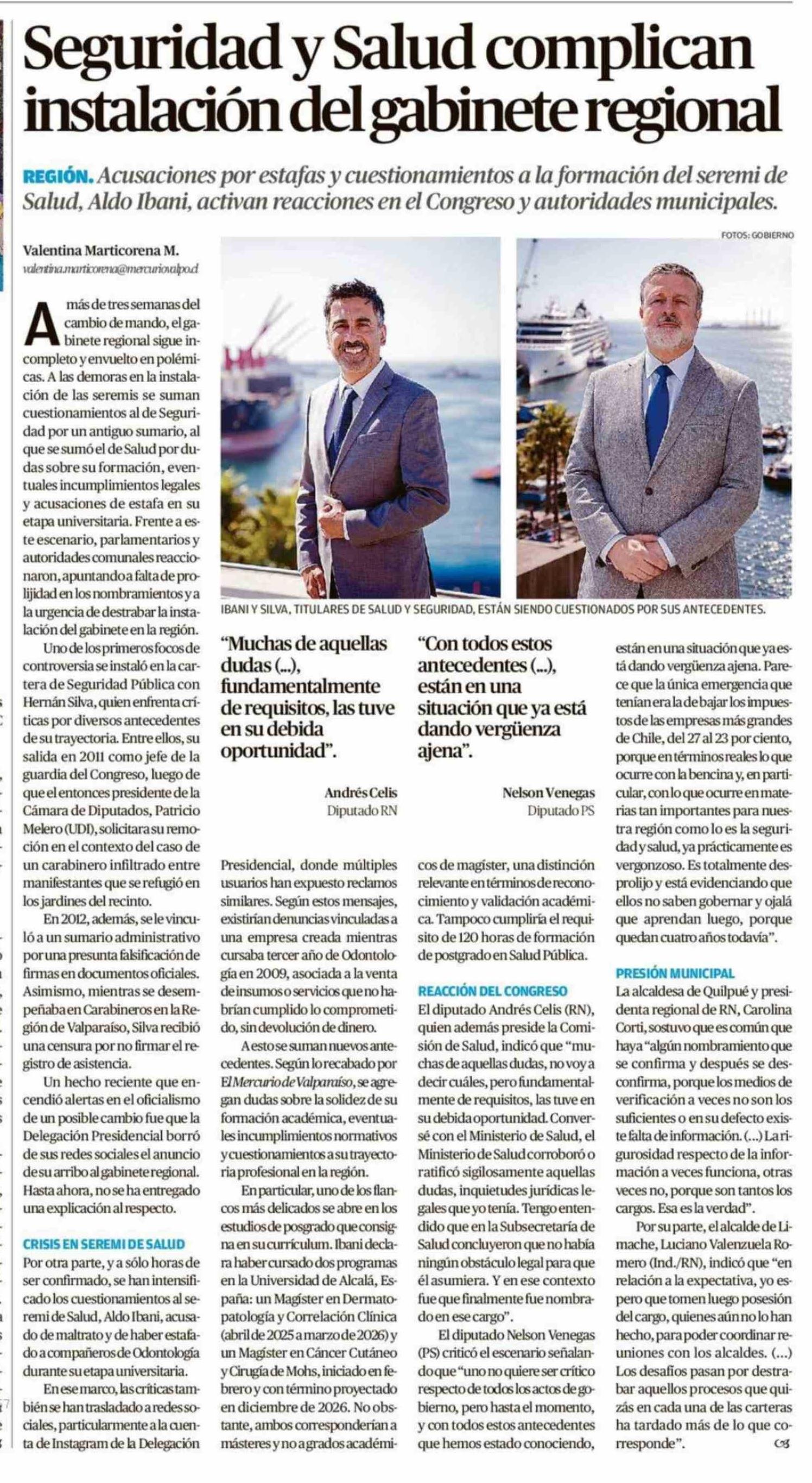 Seguridad y Salud complican instalación del gabinete regional 04-04-2026 El Mercurio de Valparaíso |