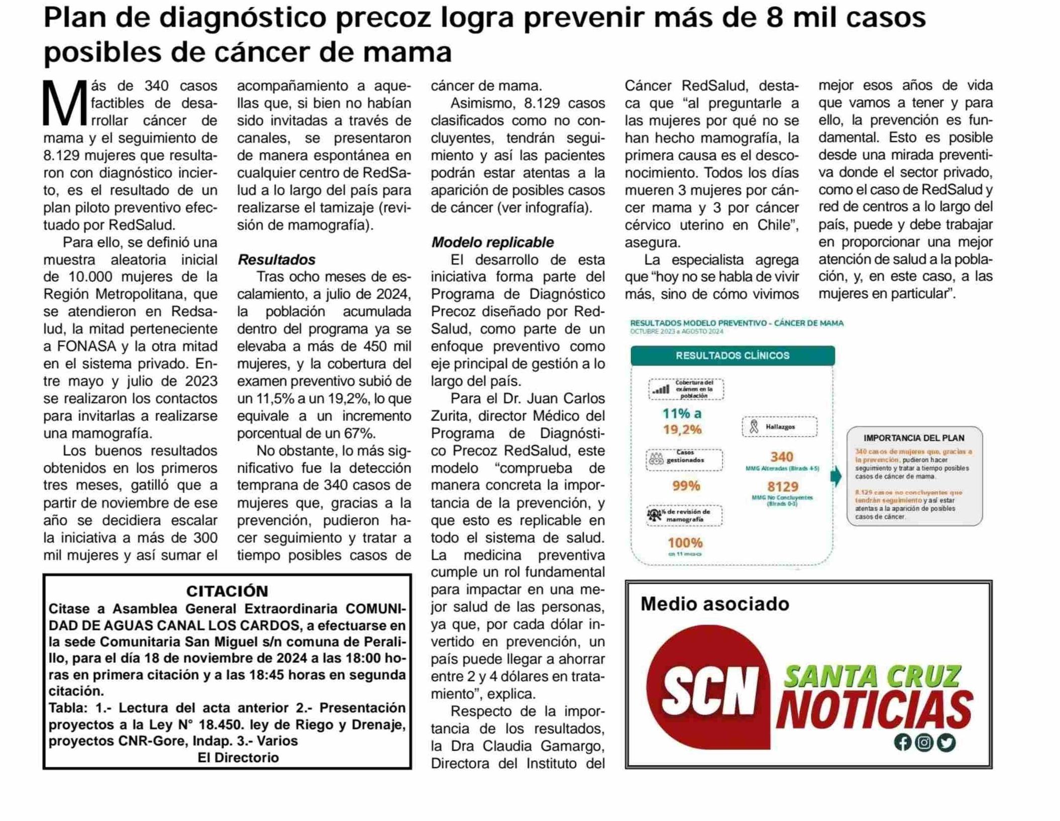 Plan de diagnóstico precoz logra prevenir más de 8 mil casos posibles de cáncer de mama 06-11-2024 Diario El Cóndor |