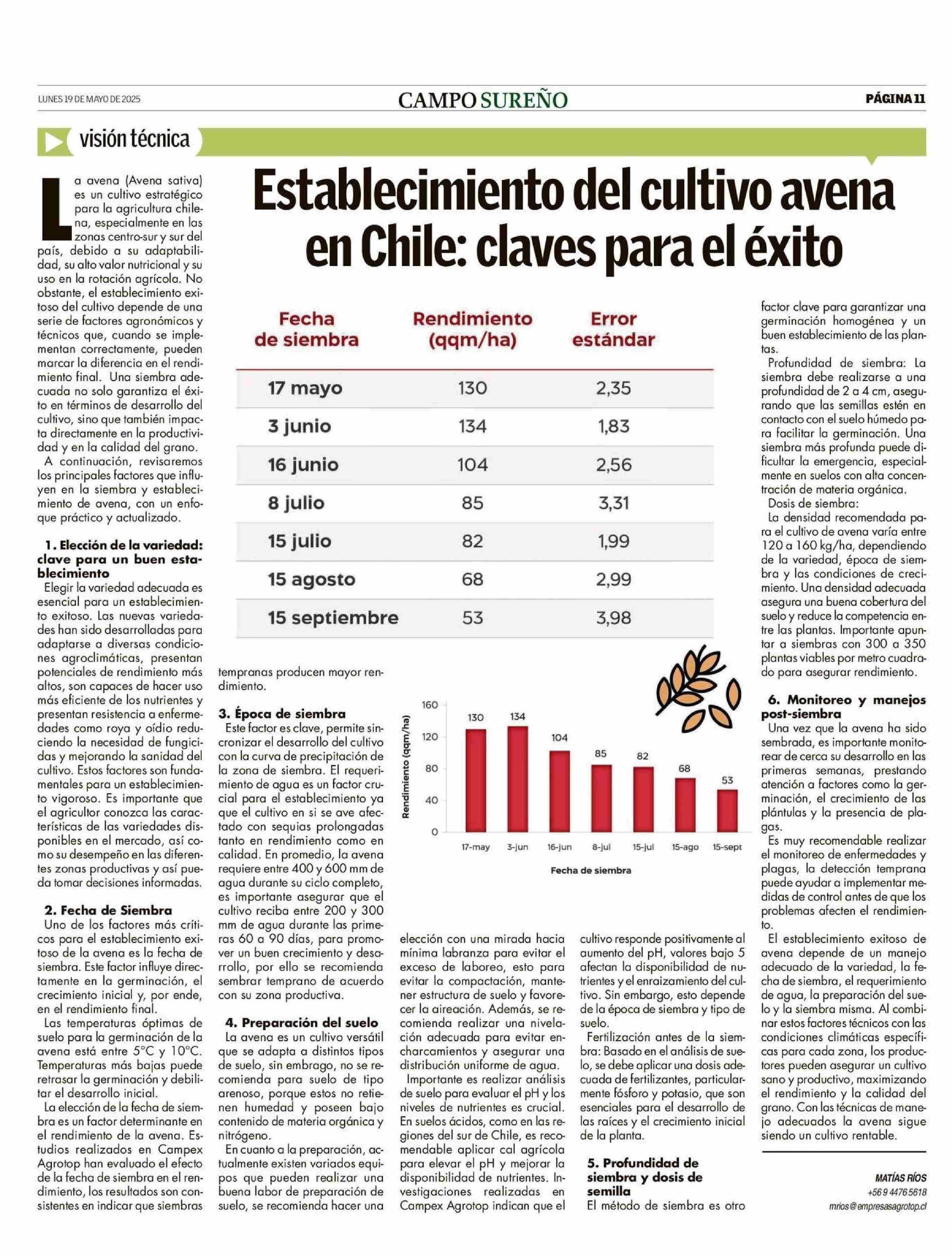 Establecimiento del cultivo avena en Chile: claves para el éxito 19-05-2025 Campo Sureño - Regiones IX, X y XIV |