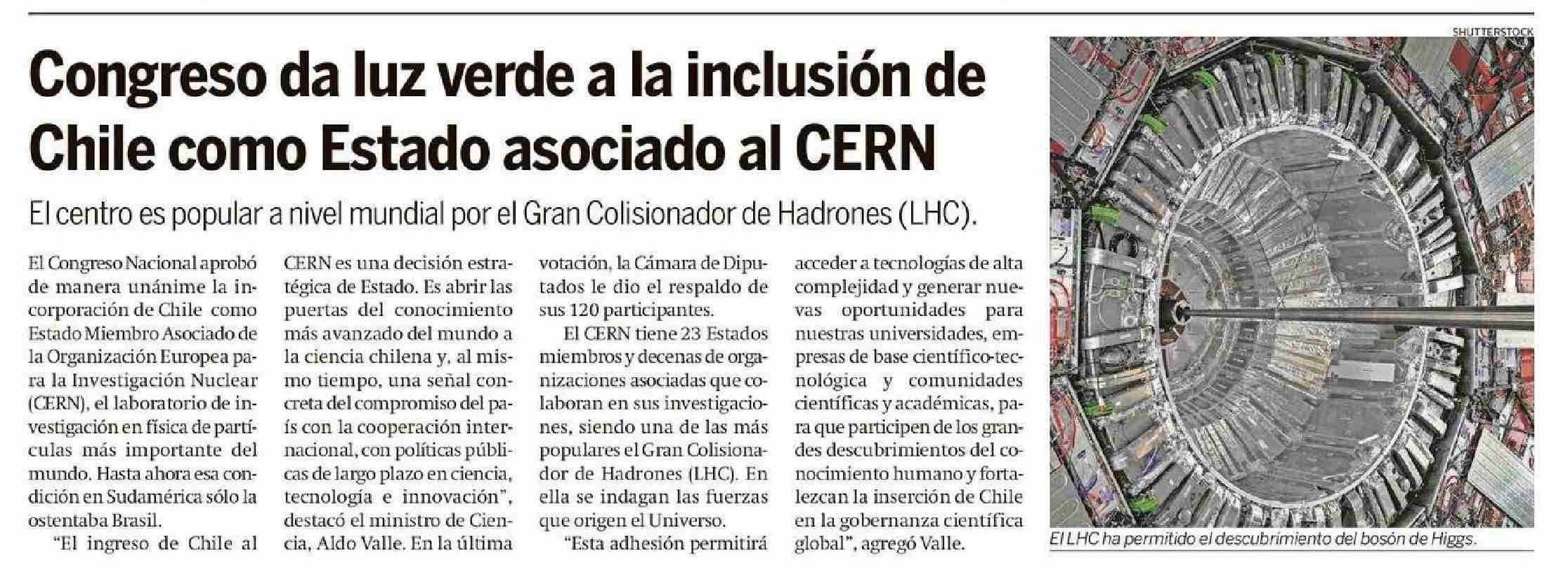 | Título: | Congreso da luz verde a la inclusión de Chile como Estado asociado al CERN |