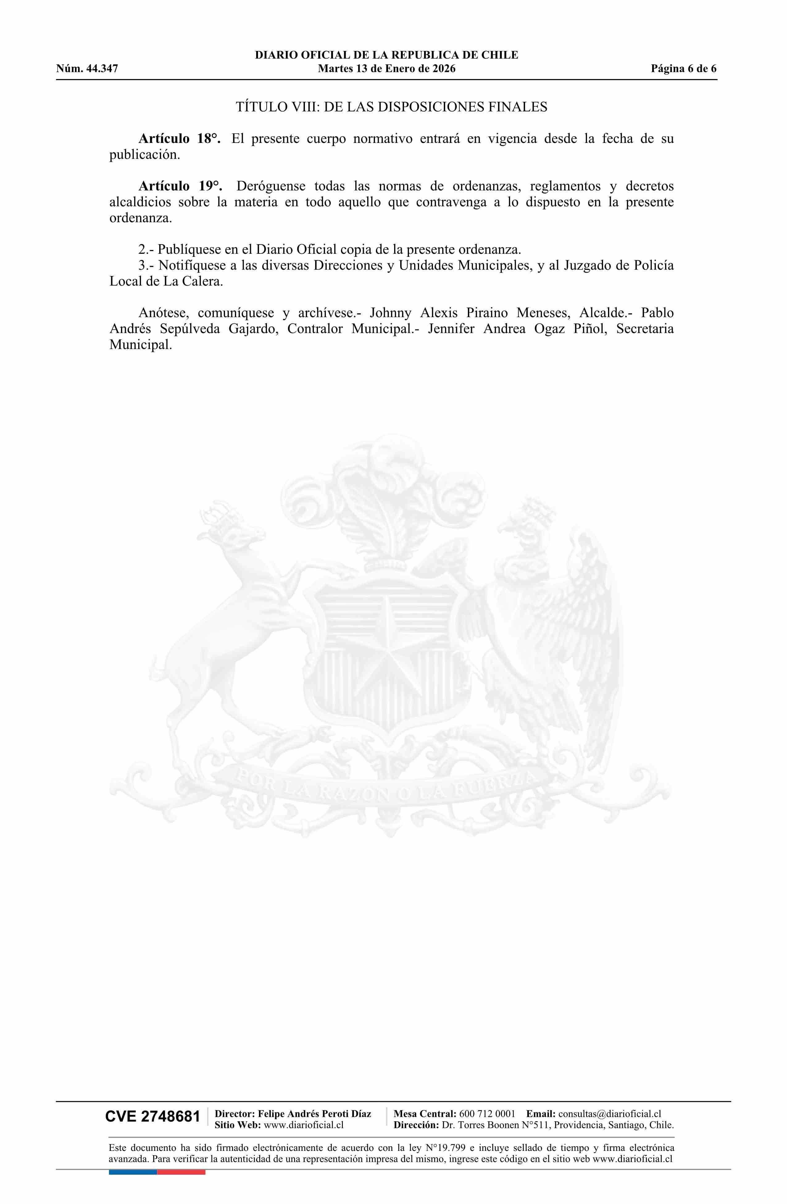Decreto alcaldicio número 1.801, de 2025.- Aprueba Ordenanza sobre humedades urbanos 13-01-2026 DIARIO OFICIAL CHILE - BOLETÍN OFICIAL DE MINERÍA |