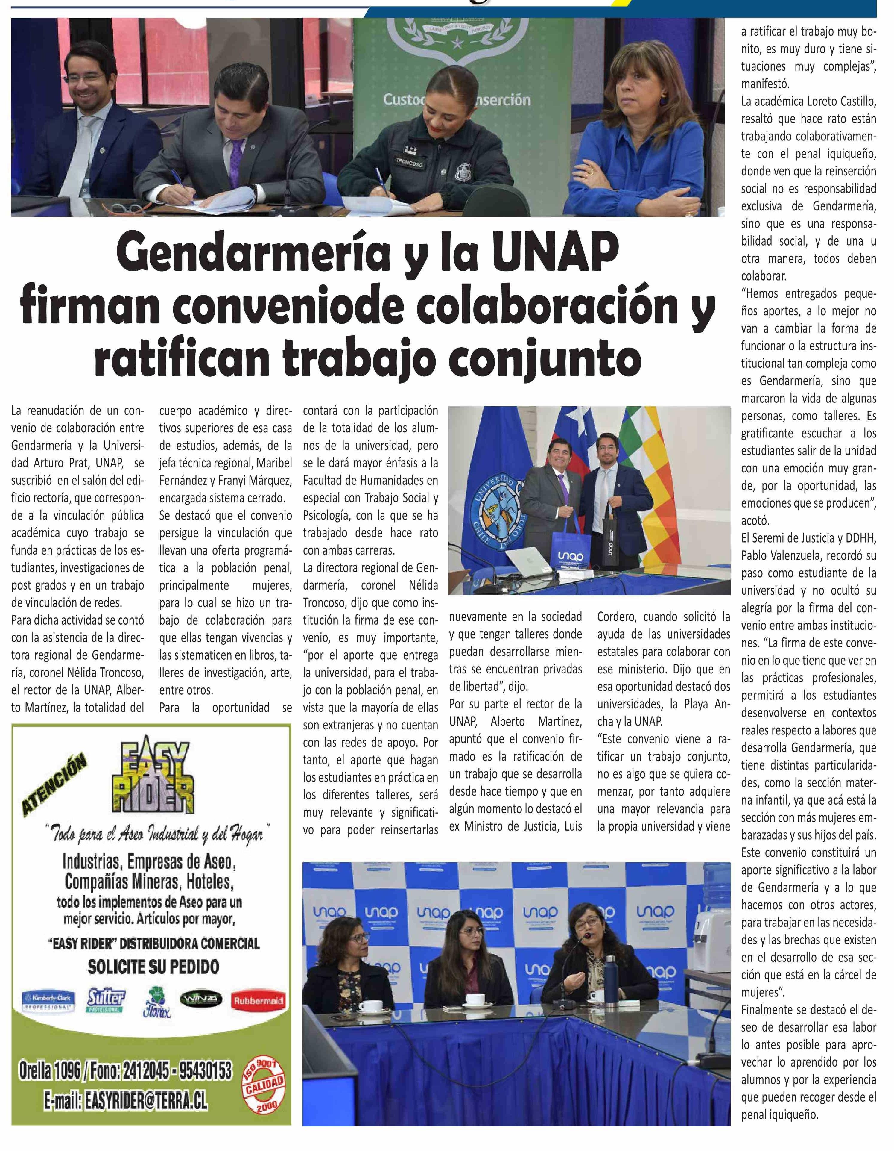 Gendarmería y la UNAP firman conveniode colaboración y ratifican trabajo conjunto 06-06-2025 El Longino |