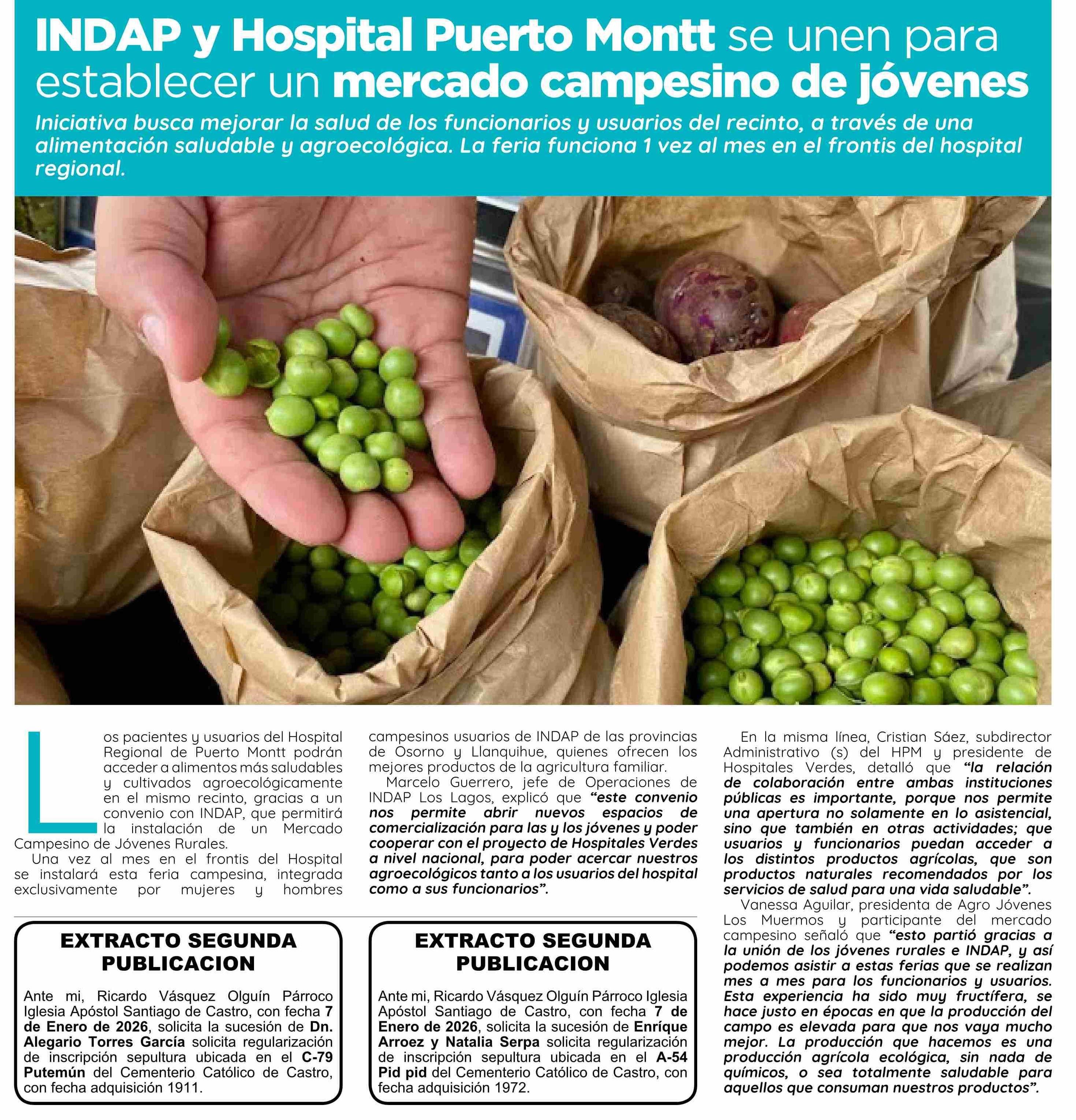 INDAP y Hospital Puerto Montt se unen para establecer un mercado campesino de jóvenes 07-01-2026 El Insular |