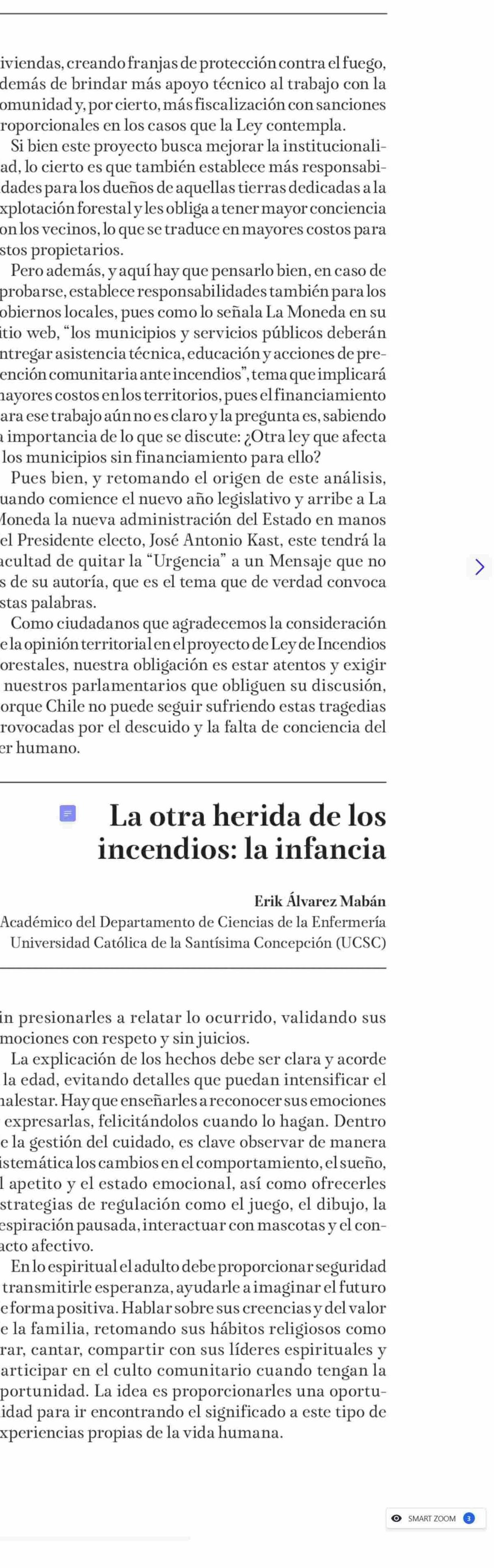 | Título: | Columnas de Opinión: ¿Perderá la urgencia el proyecto de Ley de Incendios Forestales con el nuevo Gobierno? |