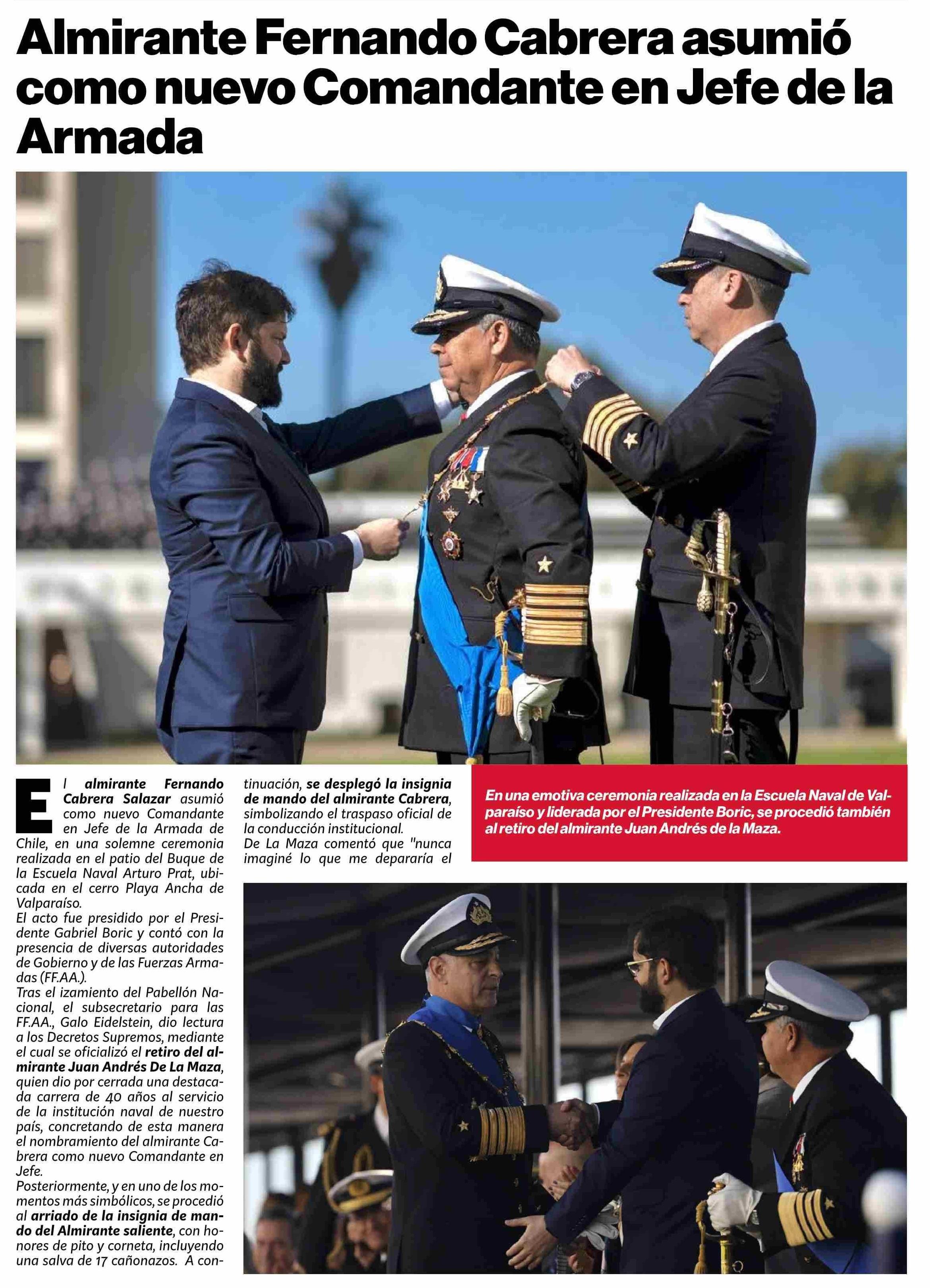 Almirante Fernando Cabrera asumió como nuevo Comandante en Jefe de la Armada 18-06-2025 Puranoticia.cl |