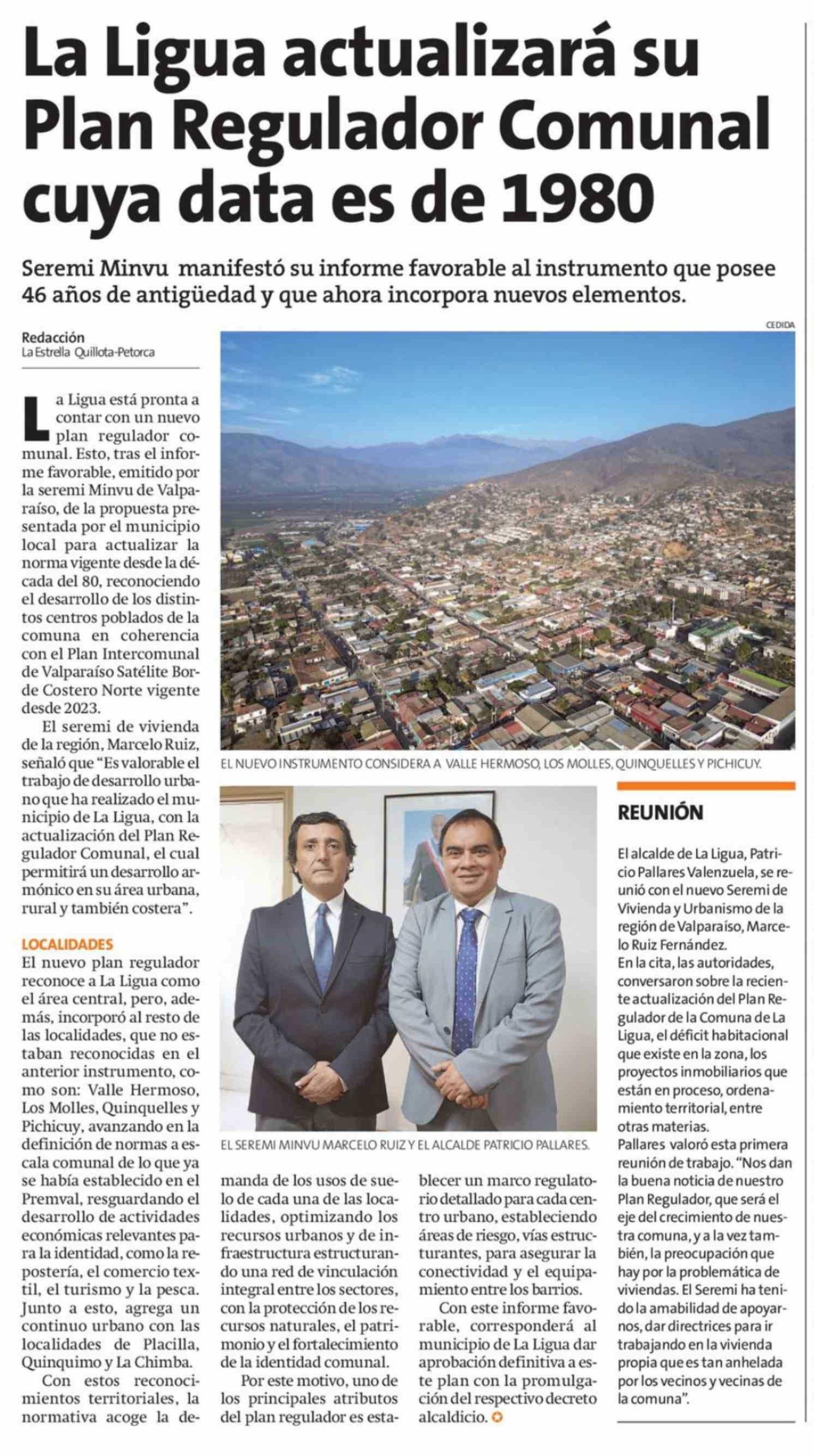 La Ligua actualizará su Plan Regulador Comunal cuya data es de 1980 10-04-2026 La Estrella de Quillota |