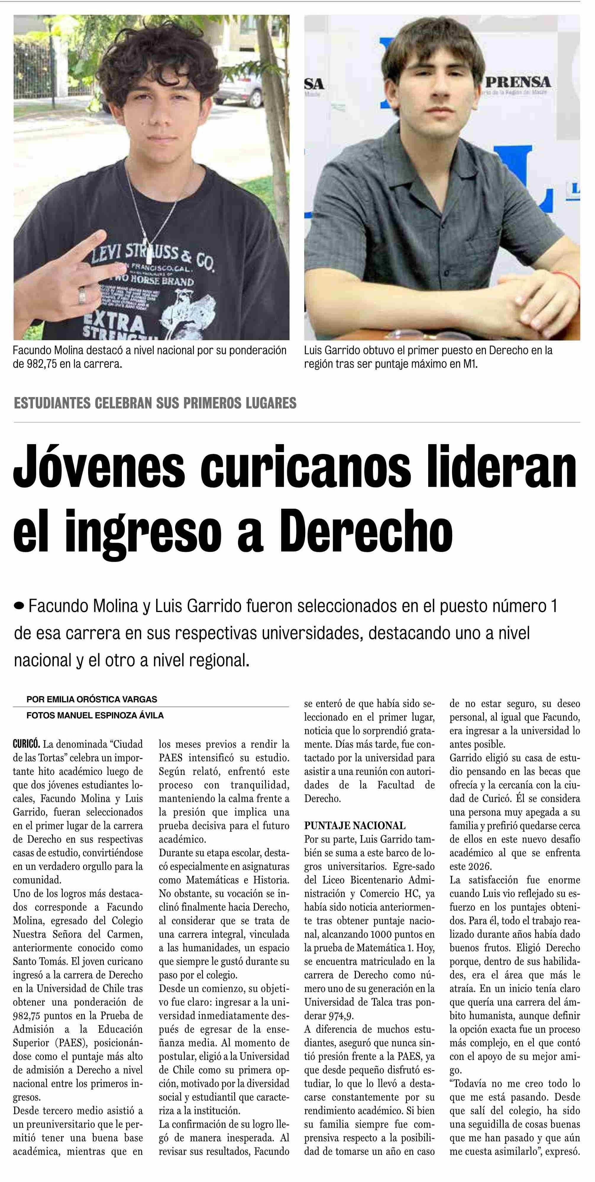 Título: Jóvenes curicanos lideran el ingreso a Derecho