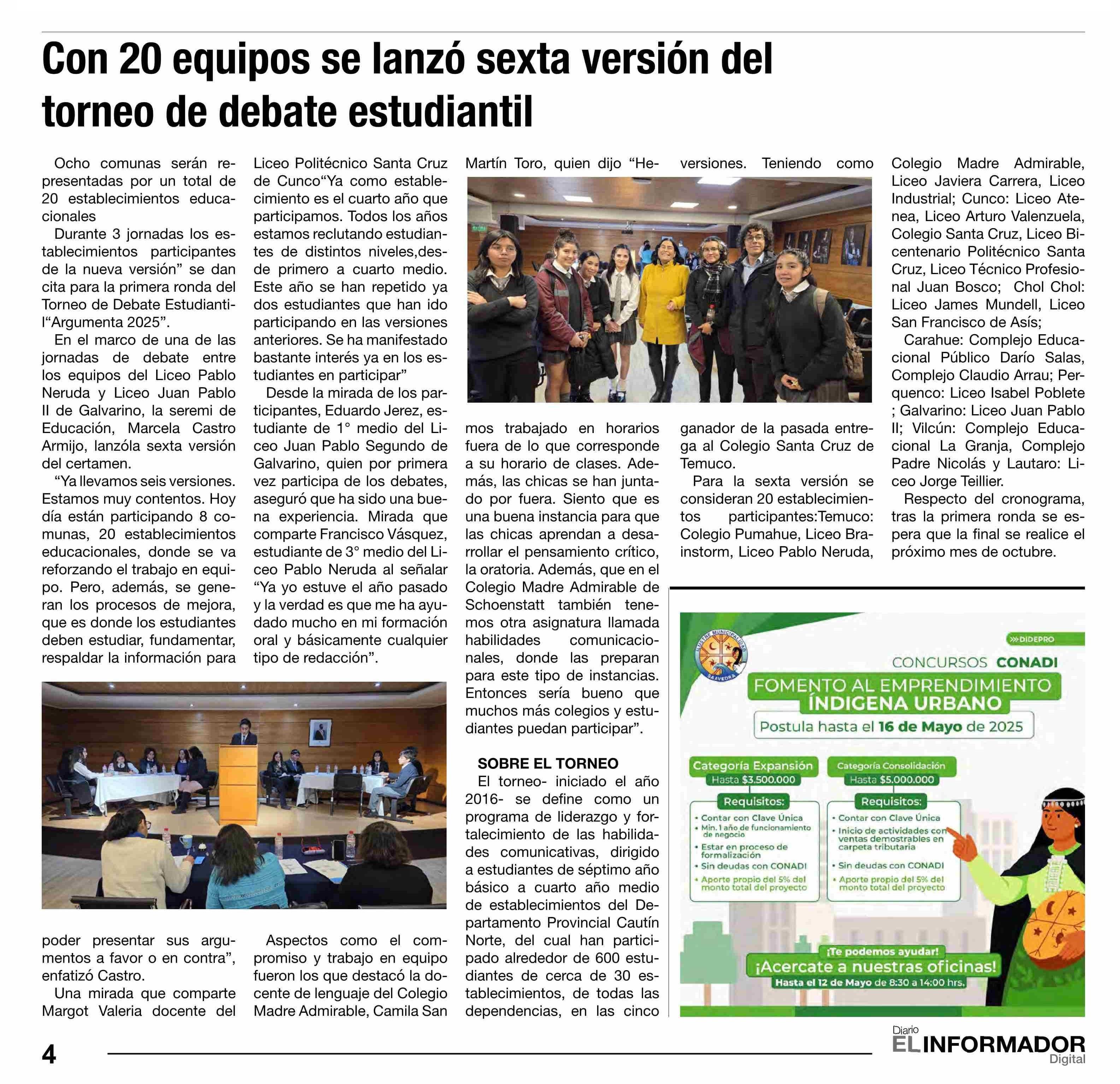 Con 20 equipos se lanzó sexta versión del torneo de debate estudiantil 08-05-2025 El Informador |