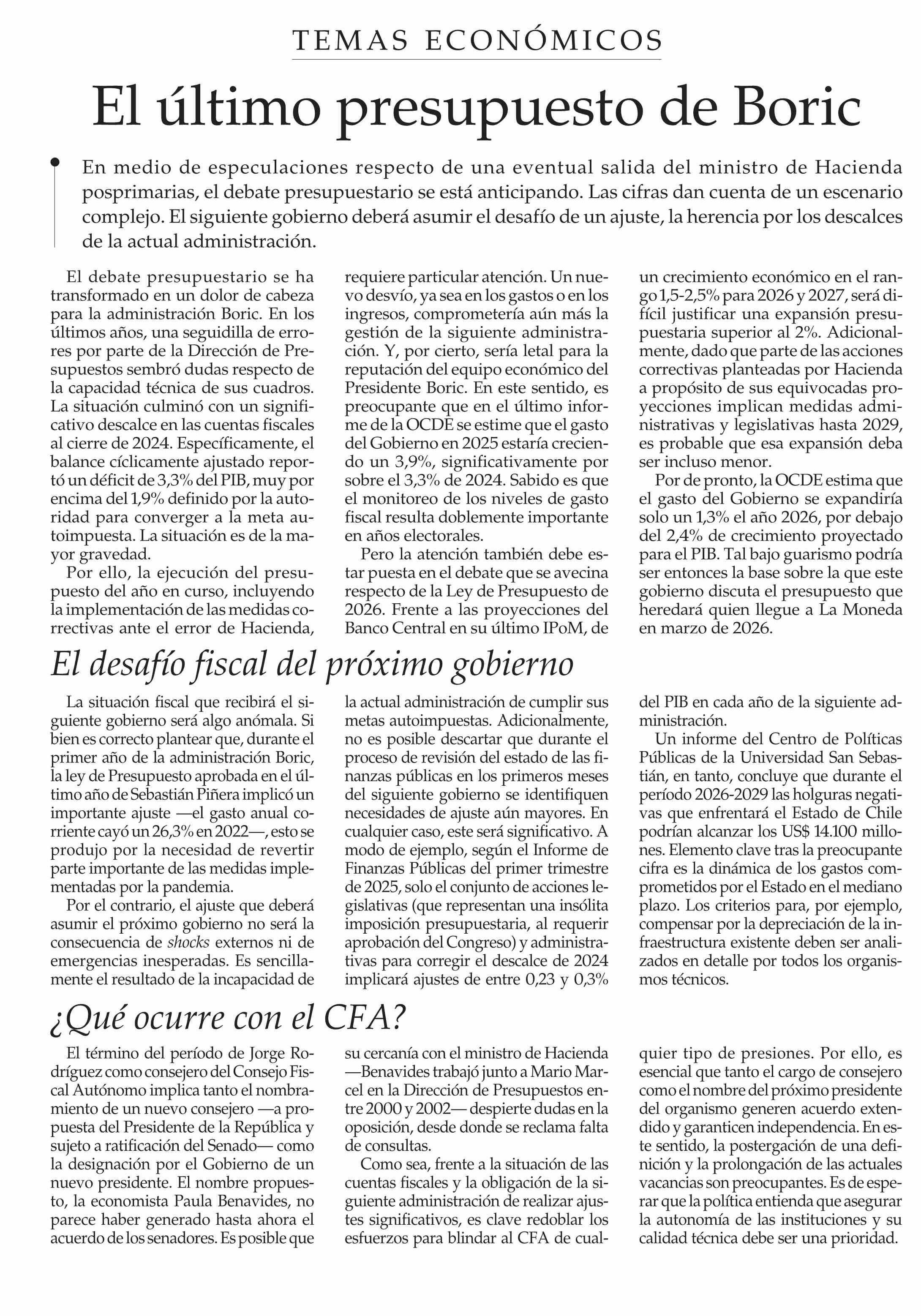 Título: COLUMNAS DE OPINIÓN: El último presupuesto de Boric