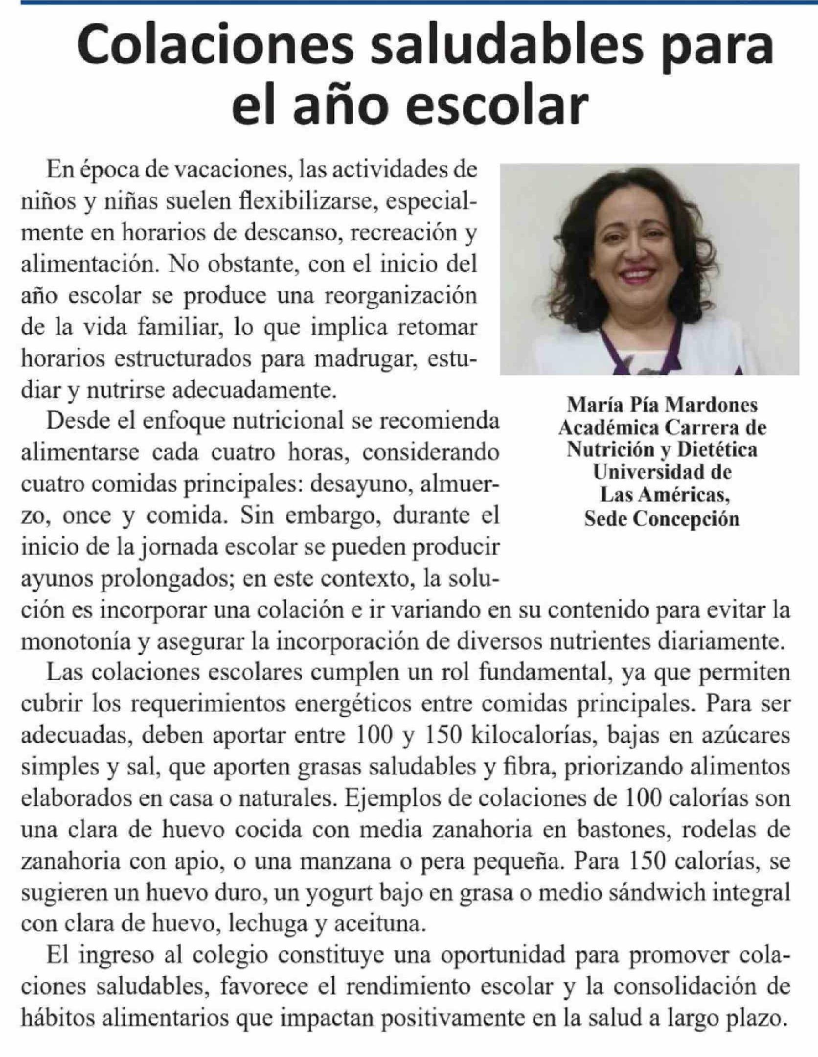 Título: Columnas de Opinión: Colaciones saludables para el año escolar