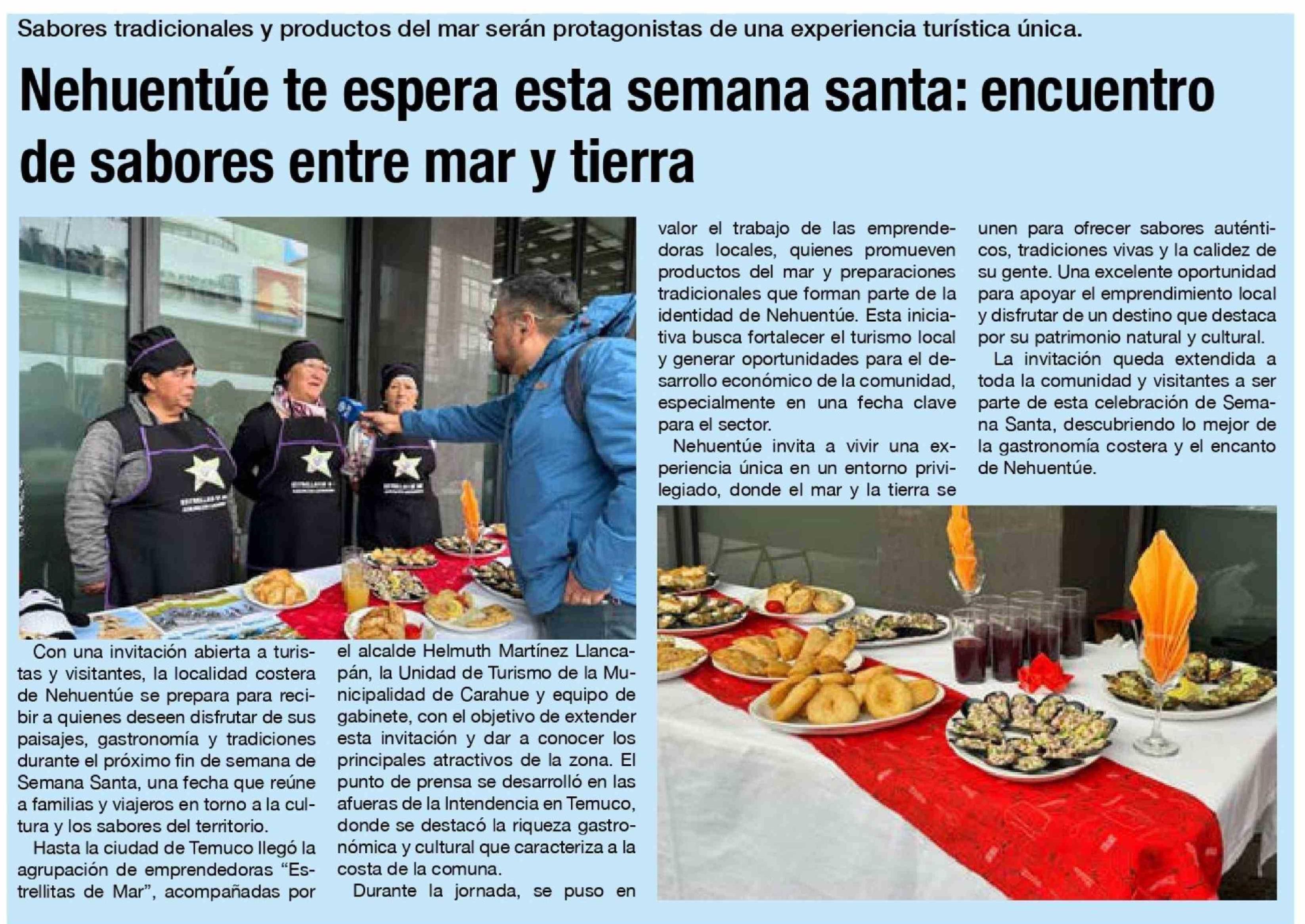 | Título: | Nehuentúe te espera esta semana santa: encuentro de sabores entre mar y tierra |