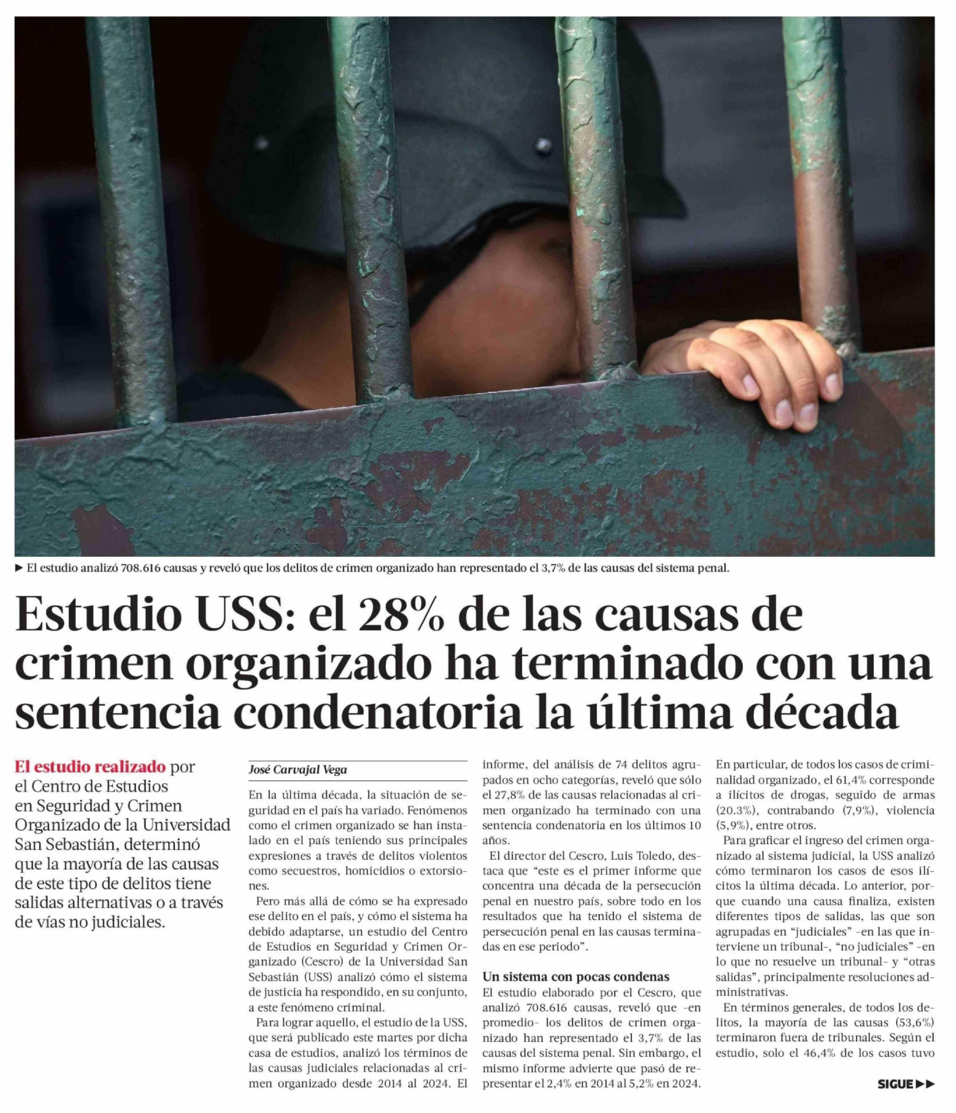 Estudio USS: el 28% de las causas de crimen organizado ha terminado con una sentencia condenatoria la última década 21-04-2026 La Tercera |