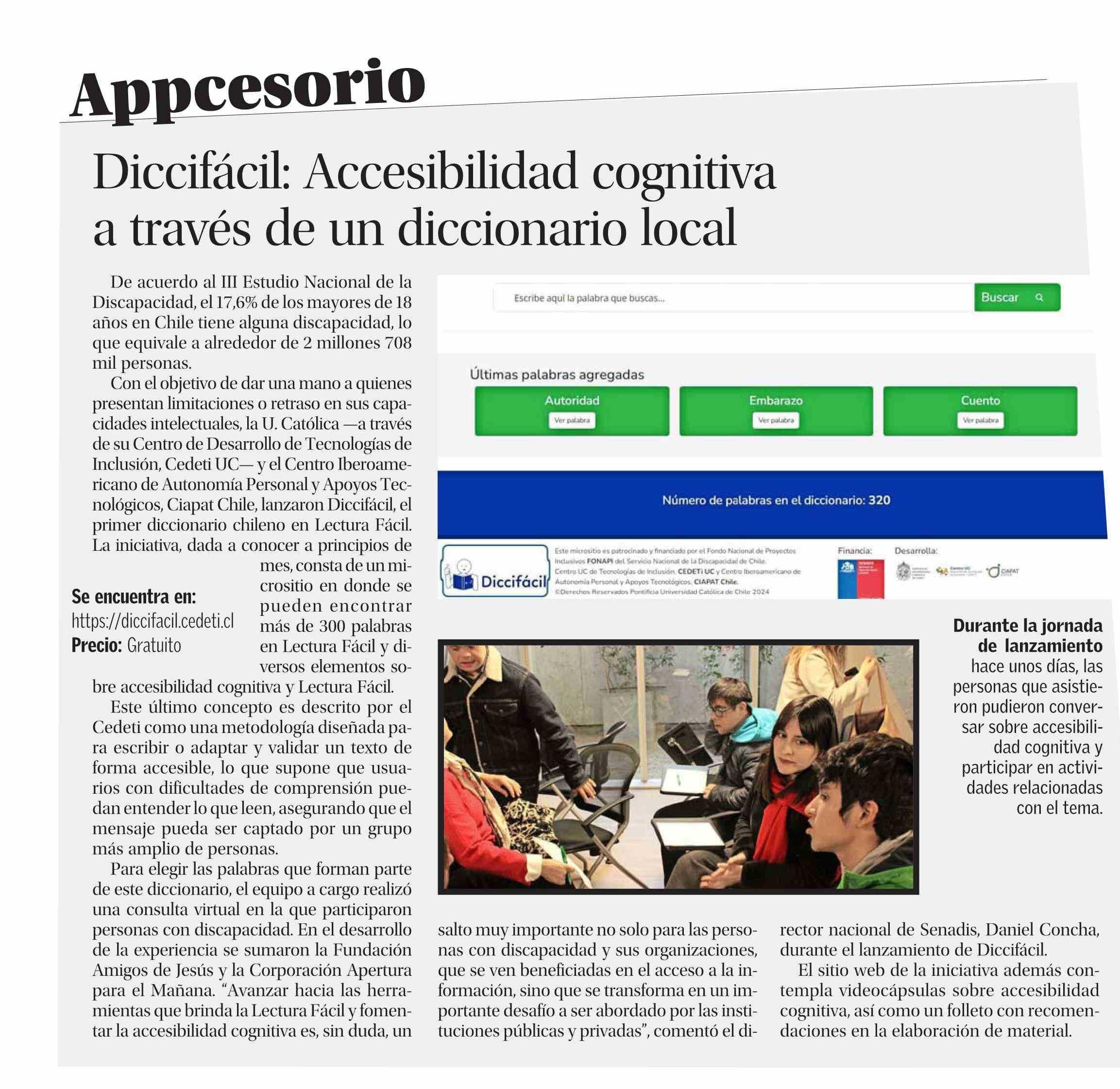 Diccifácil: Accesibilidad cognitiva a través de un diccionario local 17-07-2024 El Mercurio |