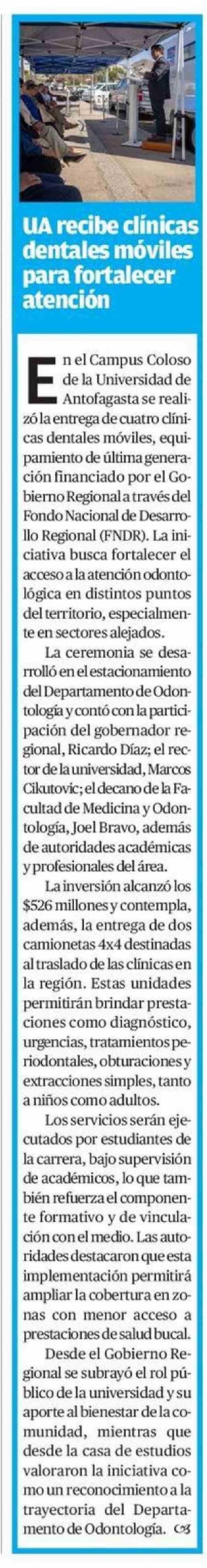 Título: UA recibe clínicas dentales móviles para fortalecer atención