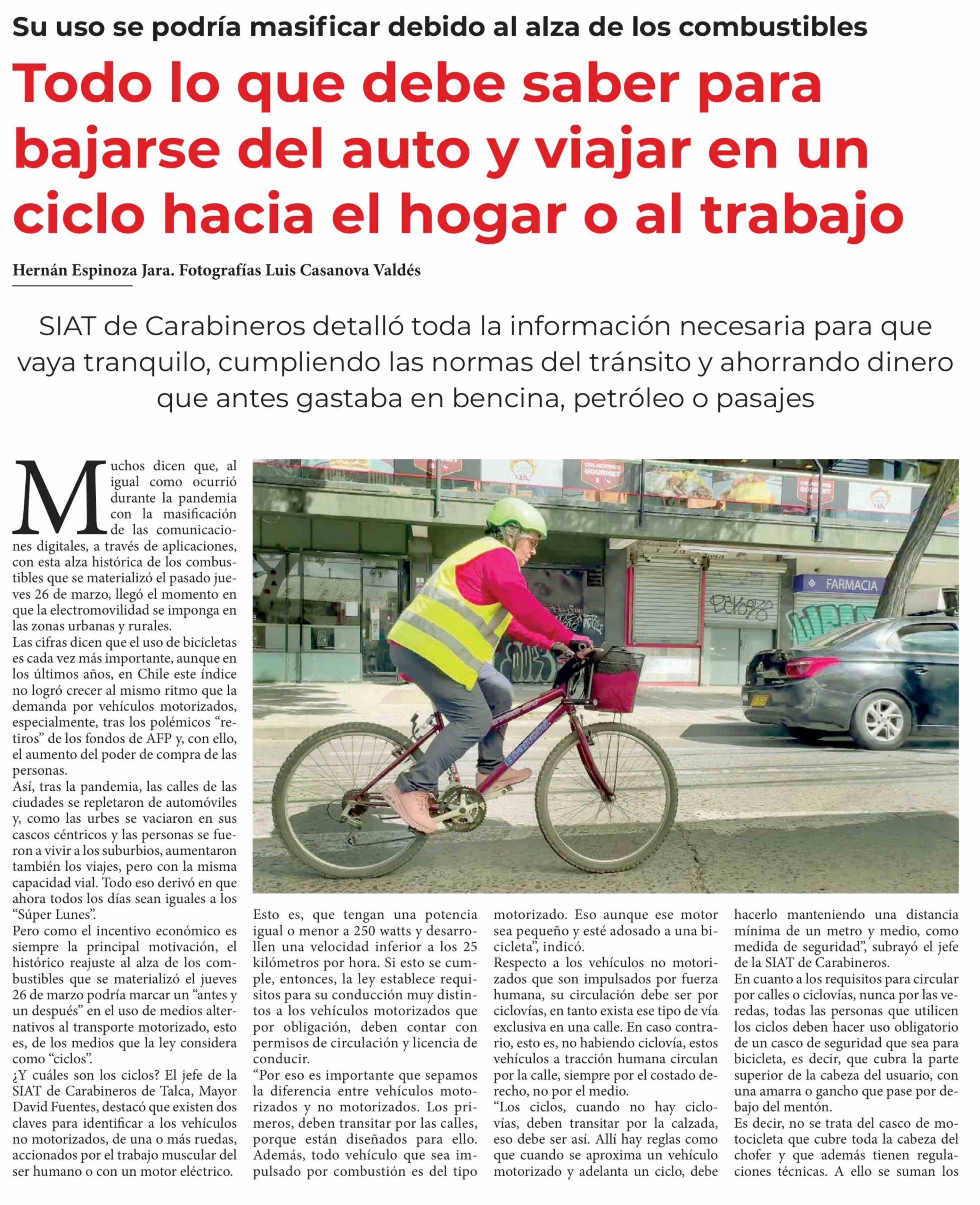 Todo lo que debe saber para bajarse del auto y viajar en un ciclo hacia el hogar o al trabajo 29-03-2026 Diario Talca |